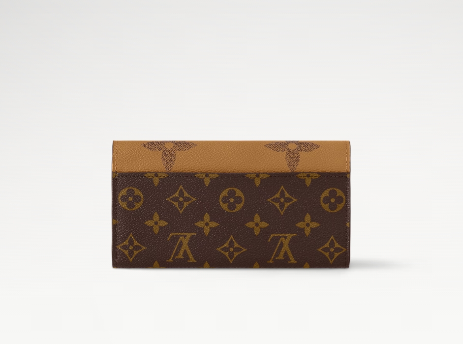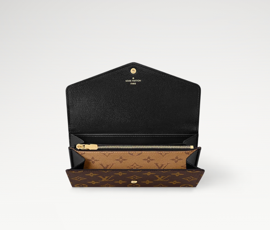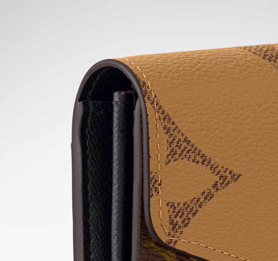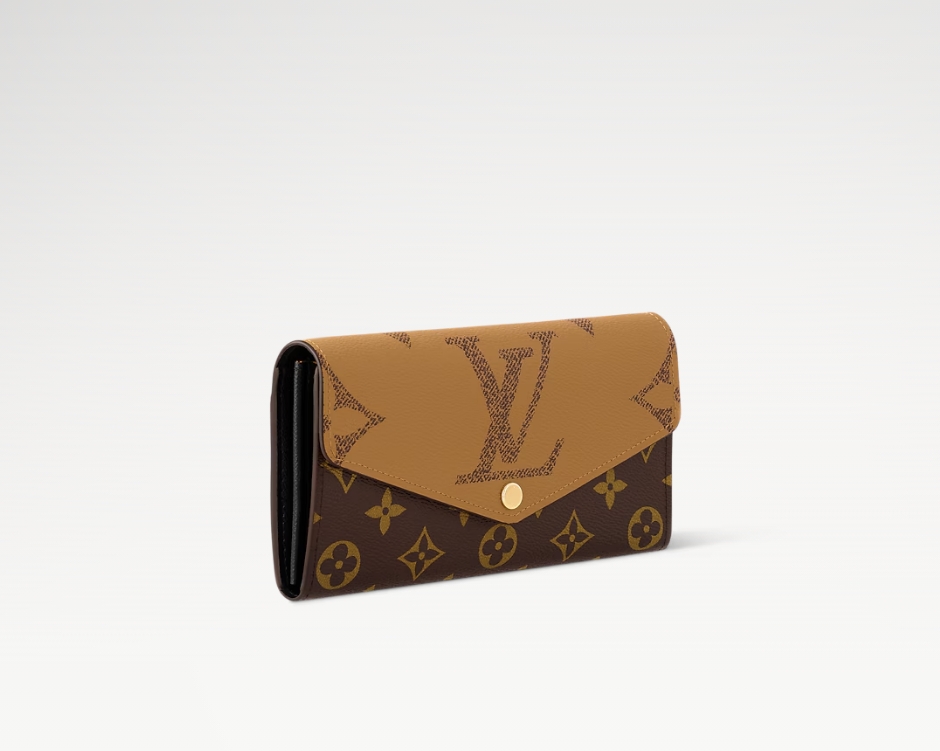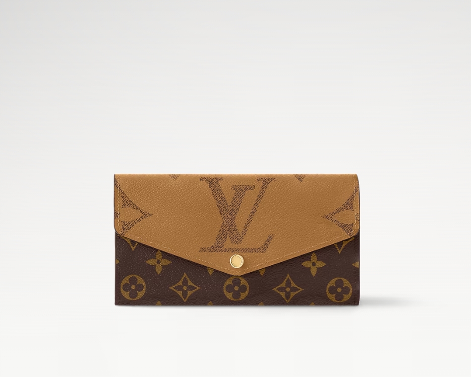 モノグラム・キャンバスとモノグラム・ジャイアント リバース キャンバスのエレガントな組み合わせで再解釈された「ポルトフォイユ・サラ」。クラシカルな長方形の財布は、整理しやすい内装と豊富なポケットやカードスロットが魅力です。エンヴェロップ型のフラップには、刻印を施したゴールドカラーのスナップをあしらいました。