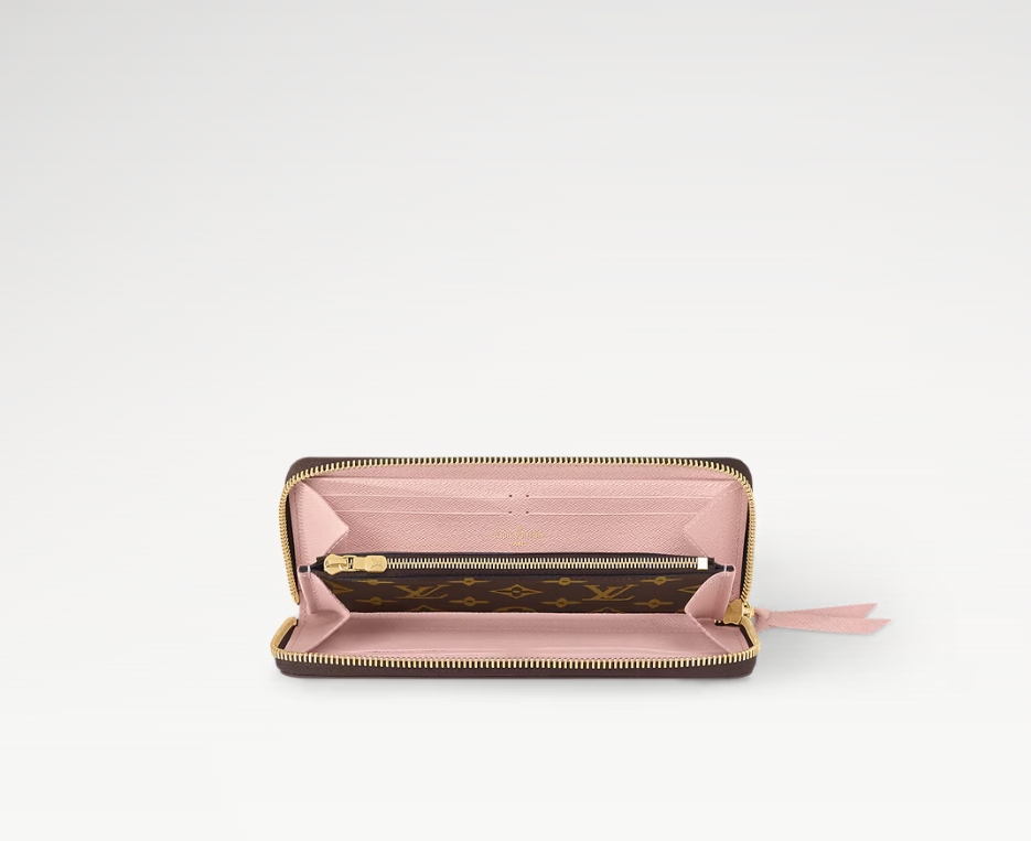 コンパクトながらも収納力抜群なスマートで機能的なモノグラム・キャンバスの財布「ポルトフォイユ・クレマンス」。鮮やかな色合いのライニングとレザーファスナープルにより、遊び心あるフェミニンさをもたらします。※コインポケットの側面にはモノグラム・キャンバスを使用しています。