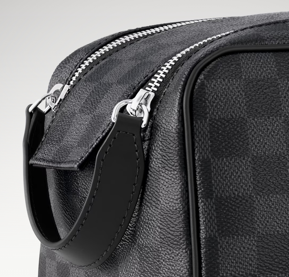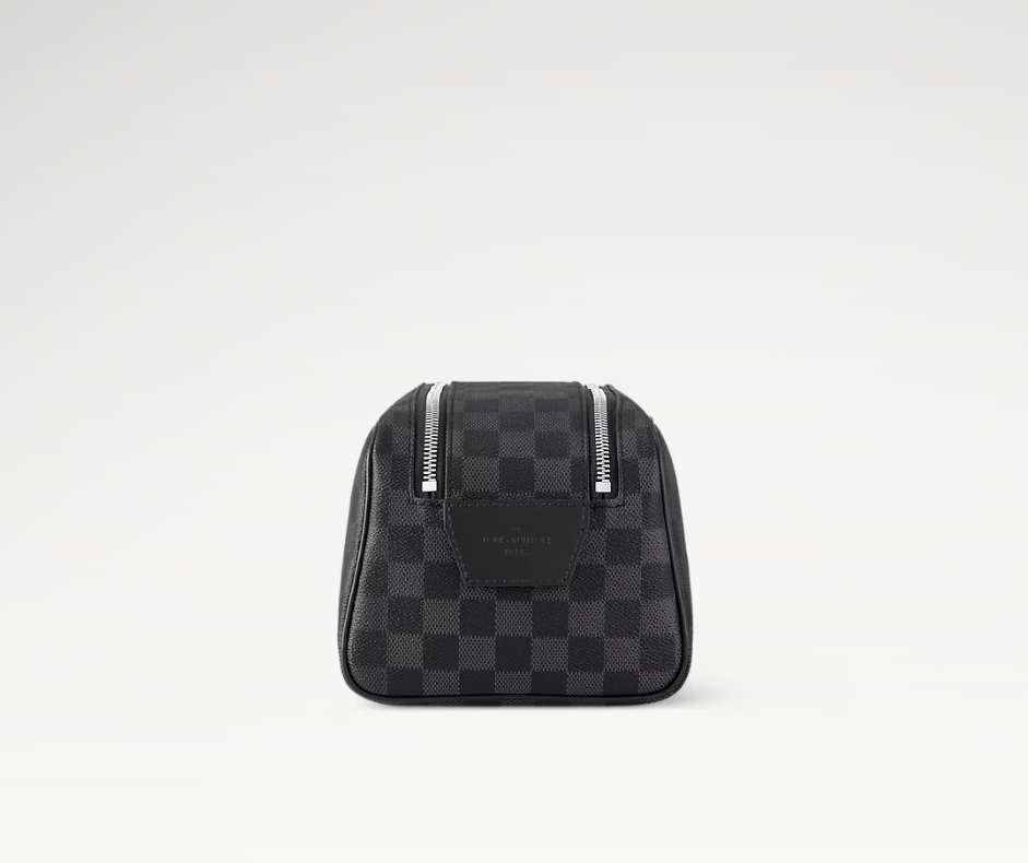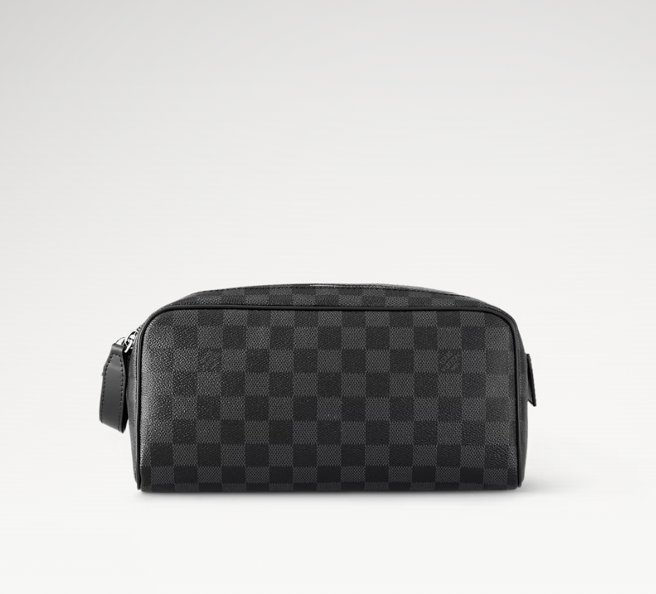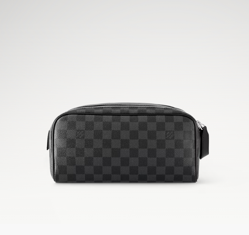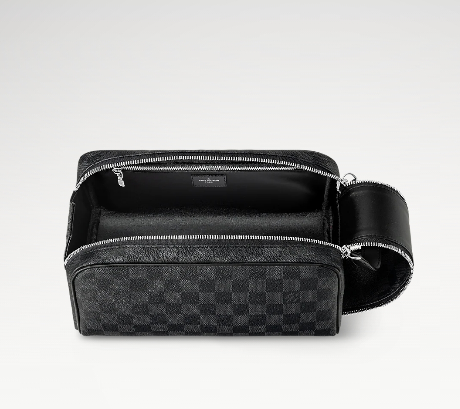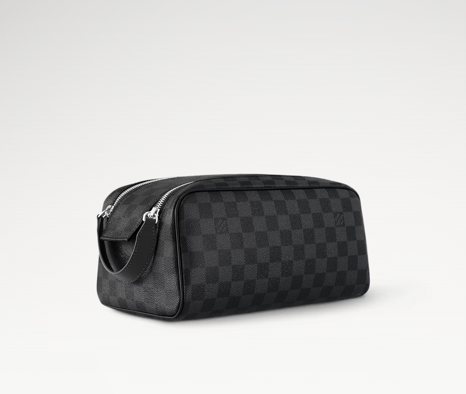 メゾンのシグネチャーであるダミエ・グラフィット キャンバスにレザーのトリミングを施した大容量の「ドップ・キット」。モダンでマスキュリンなデザインにダブルファスナー開閉式で機能性をプラス。洗面具を簡単に取出せます。持ち運びしやすく、バスルームのフックに掛けるのにも便利な太めのハンドル付き。
