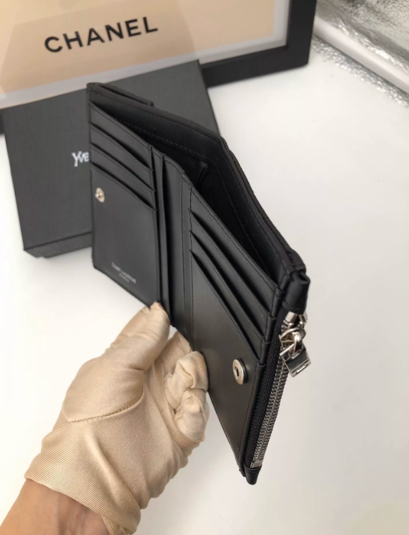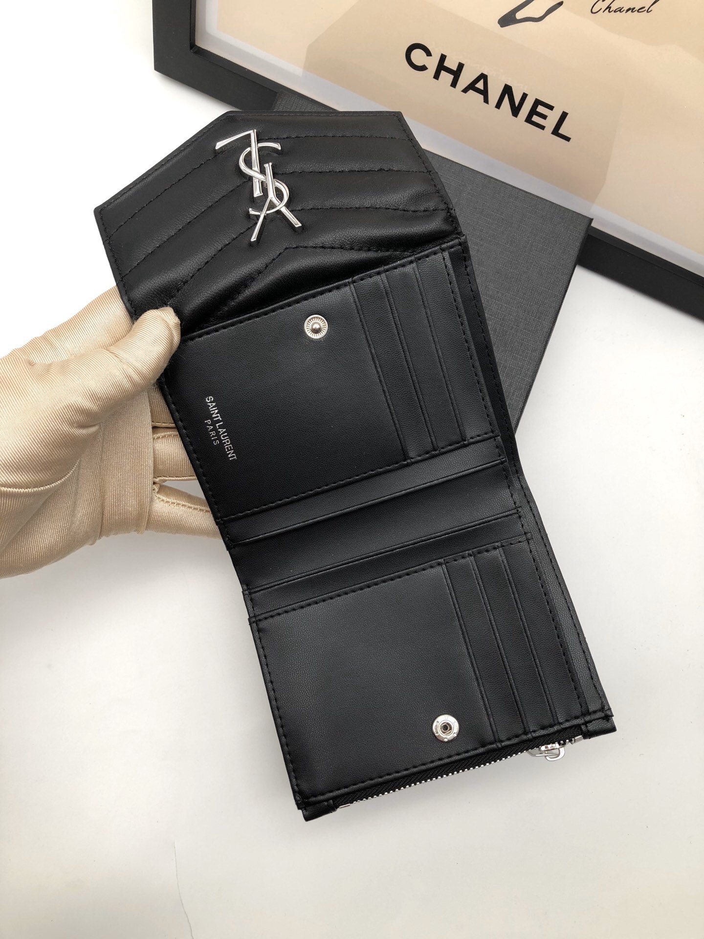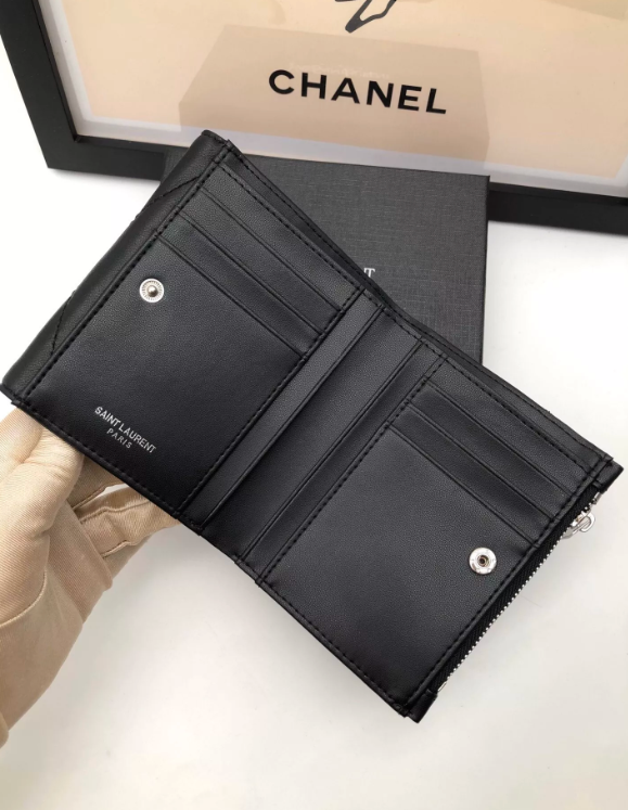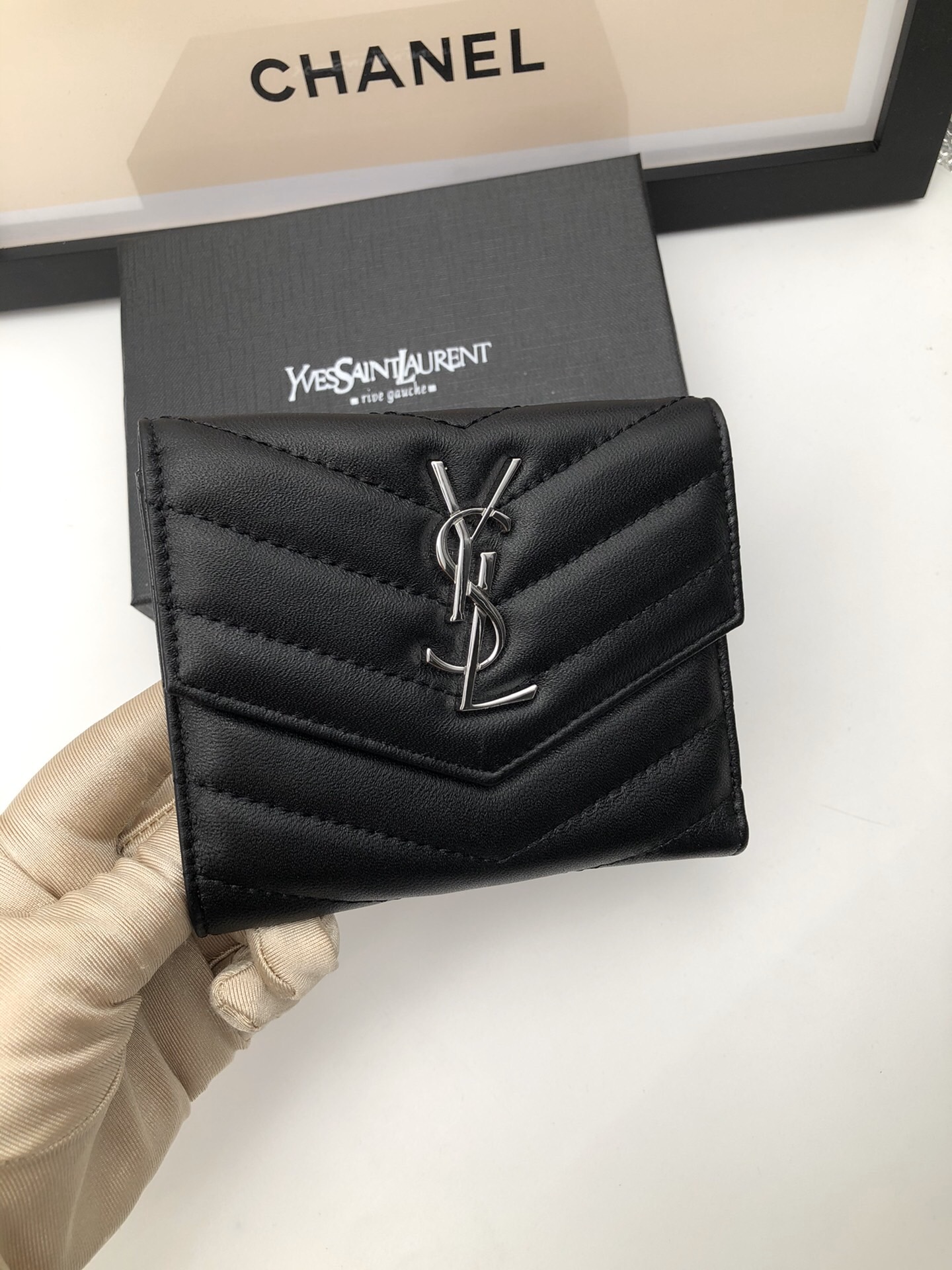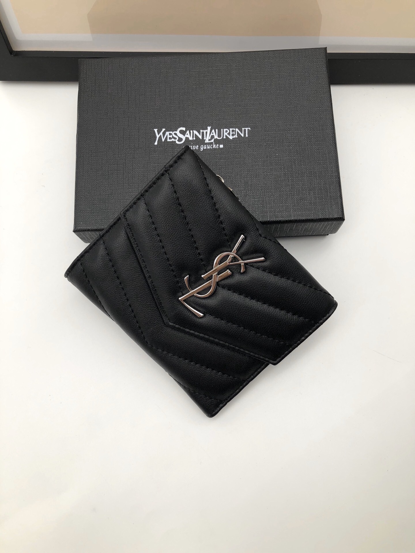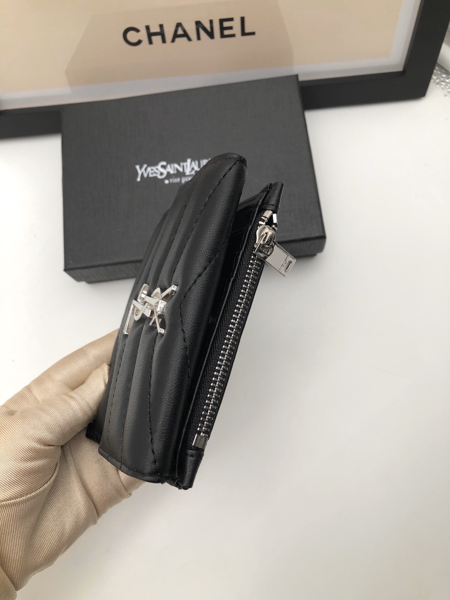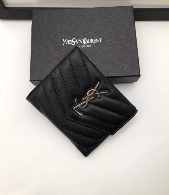 モノグラム SAINT LAURENT ウォレット。アイコニックなYSL シグネチャー、 キルティングのオーバーステッチがあしらわれています。
