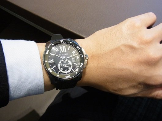2014年にカルティエのメンズライン「カリブル・ドゥ・カルティエ」コレクションから登場した初のダイバーズモデル「カリブル ドゥ カルティエ ダイバー W7100057」.国際規格のISO6425をパスした300メートル防水が特徴で、精度の高いADLCコーティング仕様のスティール製逆回転防止ベゼルを備えており、ダイバーズウォッチとして申し分ないスペックを有します.視認性の高い文字盤にスーパールミノバ夜光インデックスと、視認性にも優れています.ケースの厚さは11.5MMと薄く作られており、心地よい装着感を実現します.実に男性らしいデザインでありながら、カルティエウォッチとしての高級感も兼ね備えた1本です