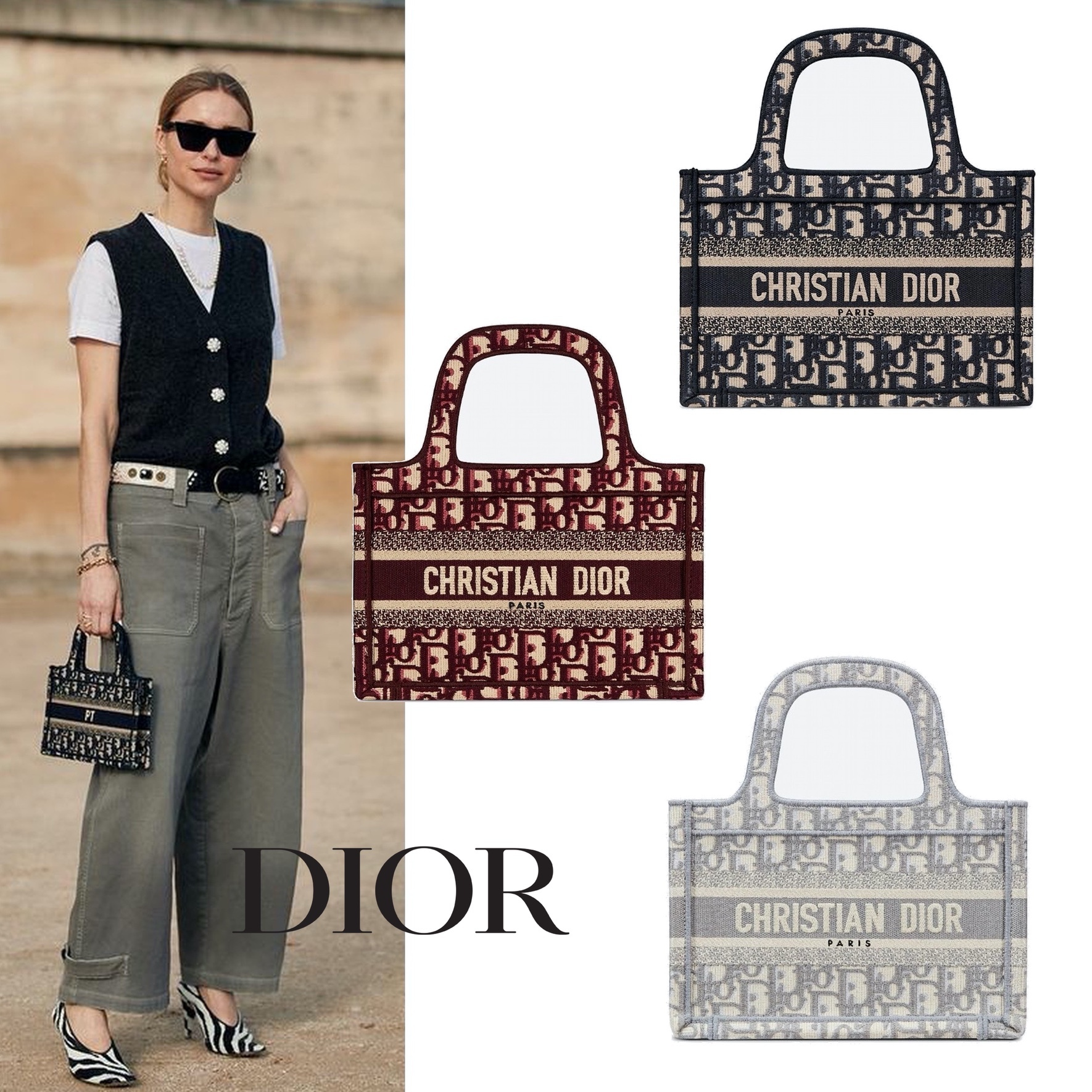アーティスティック ディレクター マリア?グラツィア?キウリが発表したオリジナル スタイルの“ディオール ブック トート”。ディオールの美意識を語る上で今や不可欠なスタイル。日々の必需品を全て持ち歩くのに理想的なミニサイズ。グレーの「Dior Oblique (ディオール オブリーク)」の刺繍入りキャンバスを使用し、フロントには“Christian Dior”シグネチャーをあしらいました。ディオールのサヴォワールフェールを表現するキャリーオール。他のアクセサリー小物や「Mitzah (ミッツア)」スカーフと合わせてルックを完成させるのがおすすめ。