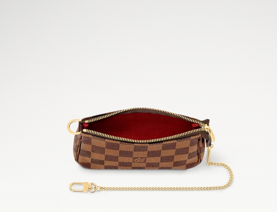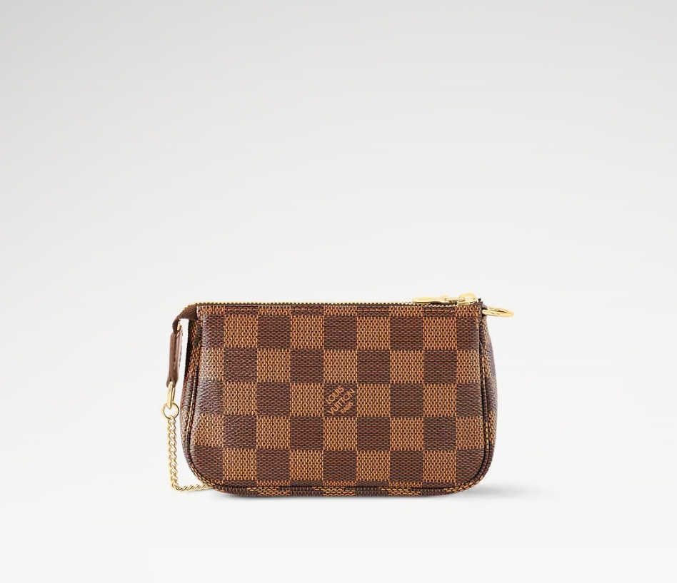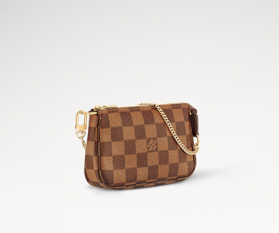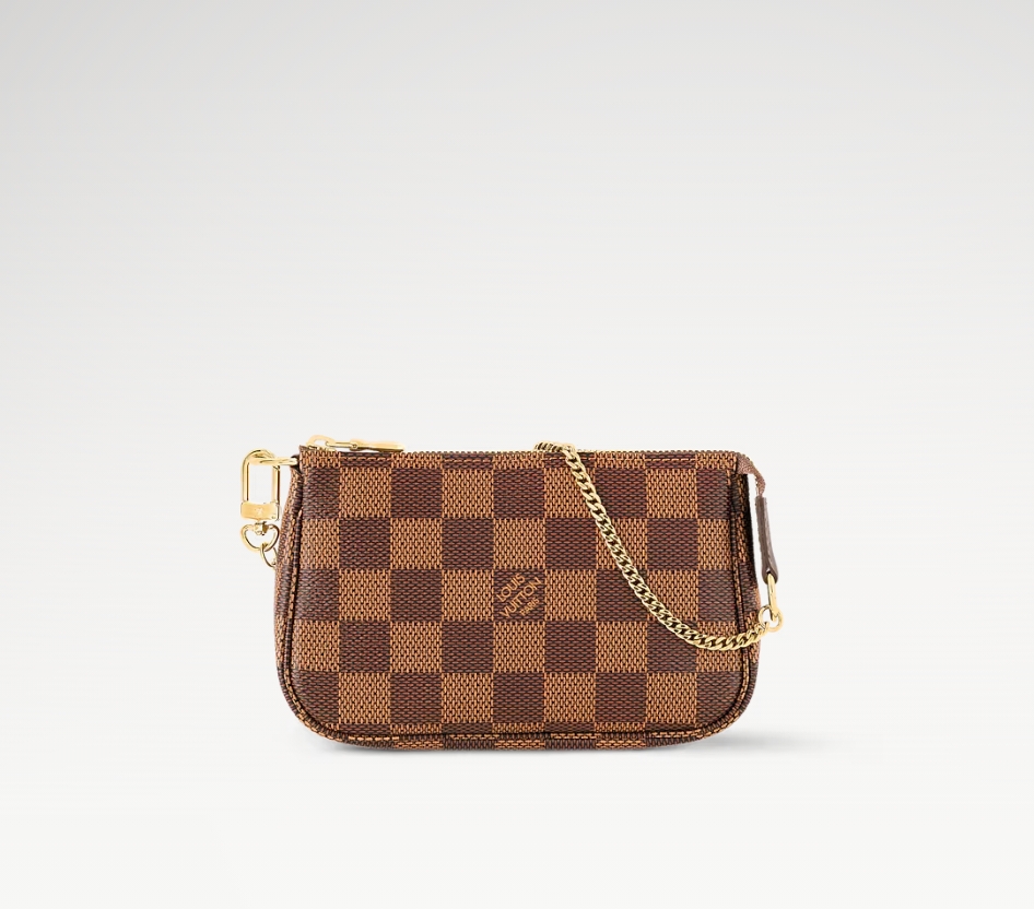 ダミエ・エベヌ キャンバスを使用した必需品を持ち歩くのにぴったりな「ミニ・ポシェット・アクセソワール」。しなやかな丸みを帯びたシェイプのこの上なく手触りのよいポーチは、ファスナー開閉式の優れた収納力も魅力です。手持ちや、付属のゴールドカラーのチェーンとフックで大ぶりのバッグに取付けることもできます。