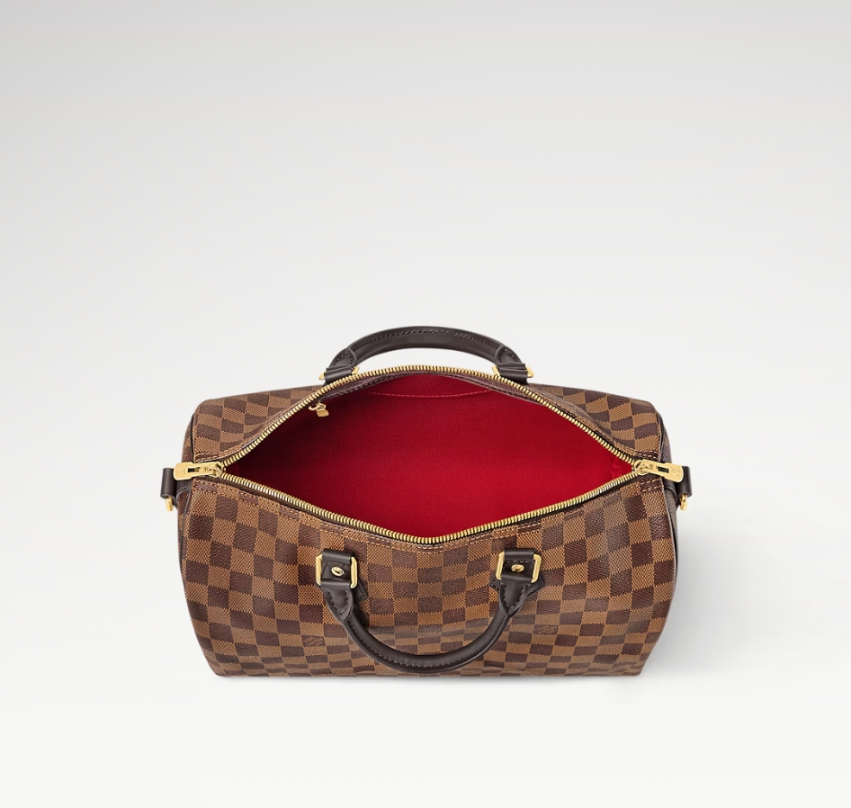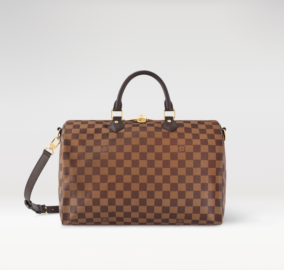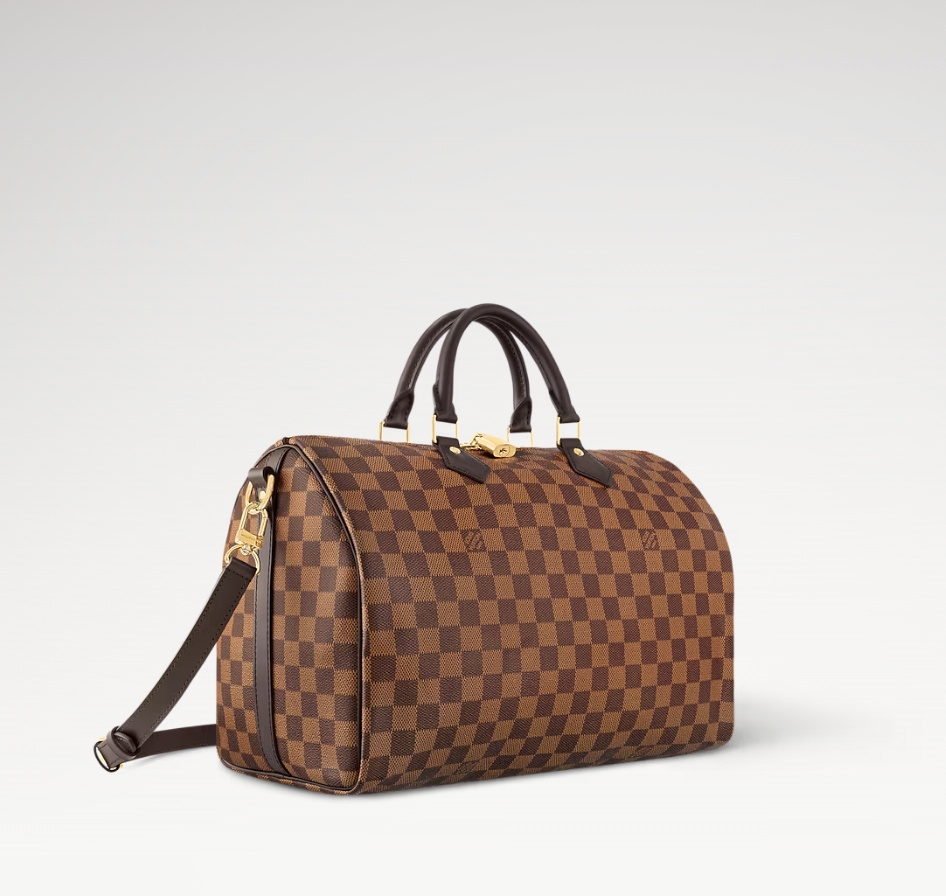ダミエ・エベヌ キャンバスで仕上げた「スピーディ・バンドリエール 35」。タイムレスで常に時代を先取りするアイテムは、忙しい日々の必需品を収納できるサイズも魅力です。「スピーディ」の前身であるバッグ「エクスプレス」は、1930年代の旅人のために作られたもの。その名は高速化が著しかった当時の移動手段にヒントを得ています。一目でそれと分かる独特のシルエットやロール仕上げのレザーハンドル、刻印入りのパドロック(錠前)、そして取外し可能なストラップなど、すべてのディテールが「スピーディ」を特別な存在にしています。