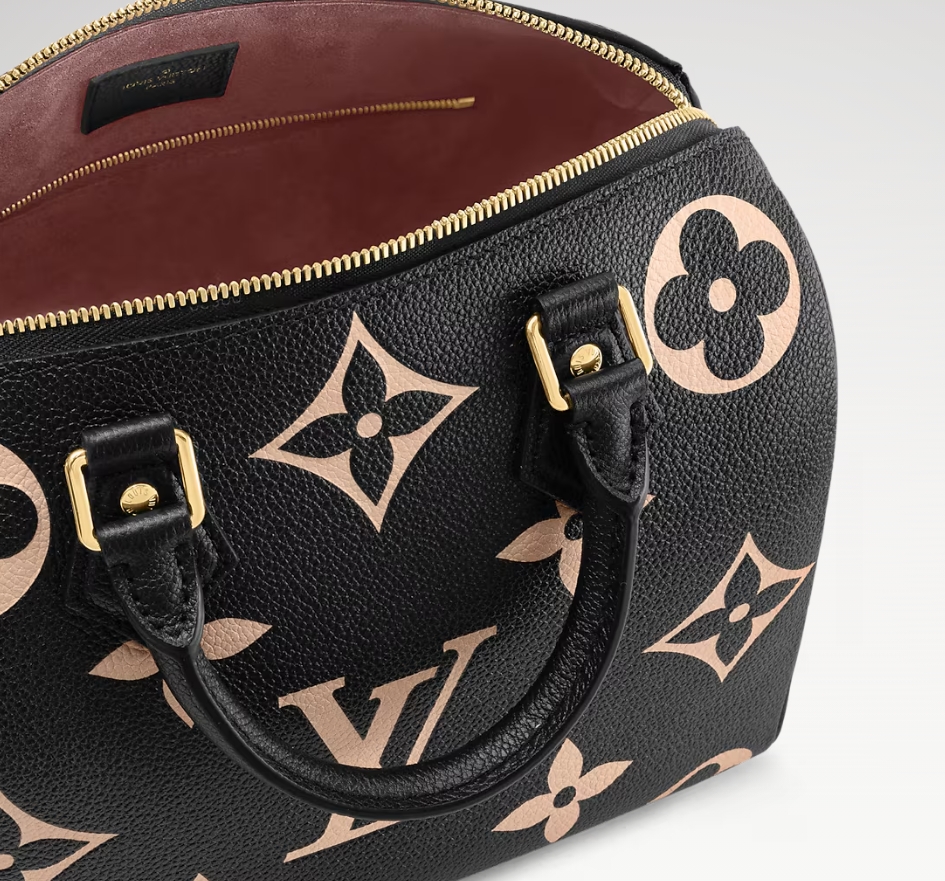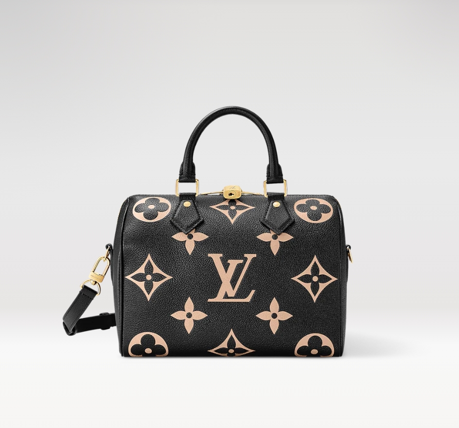 ブラックのモノグラム・アンプラント レザーにベージュのモノグラム・ジャイアント パターンを施し、コンパクトなサイズに仕上げた「スピーディ・バンドリエール 25」。メゾンが1930年に発表したバッグ「エクスプレス」から着想を得た、洗練された雰囲気のバッグです。ゴールドカラーのメタルパーツと内装にあしらわれたレッドのライニングが特徴のデザイン。取外し & 調節可能なストラップとトップハンドルでさまざまな持ち方が楽しめます。