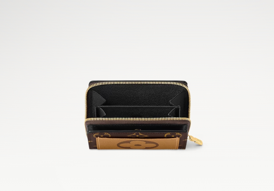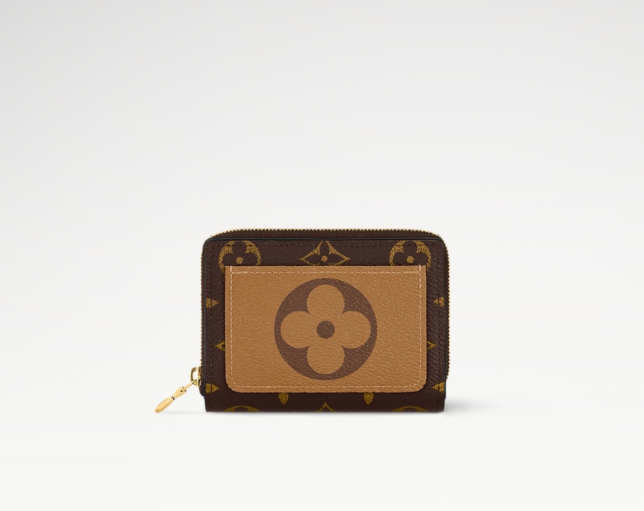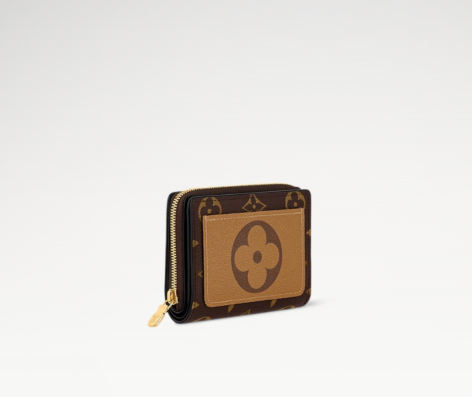 モノグラム・キャンバスで仕立てた「ポルトフォイユ・ルー」。モノグラム・リバース キャンバス製のモノグラム・フラワー モチーフを添えたフロントポケットが、コントラストを描きます。コンパクトなデザインとスクエアシェイプが魅力の財布です。グレインレザーの内装には6つのカードスロットと紙幣用コンパートメント、サイドにはファスナー付きコインポケットをあしらいました。