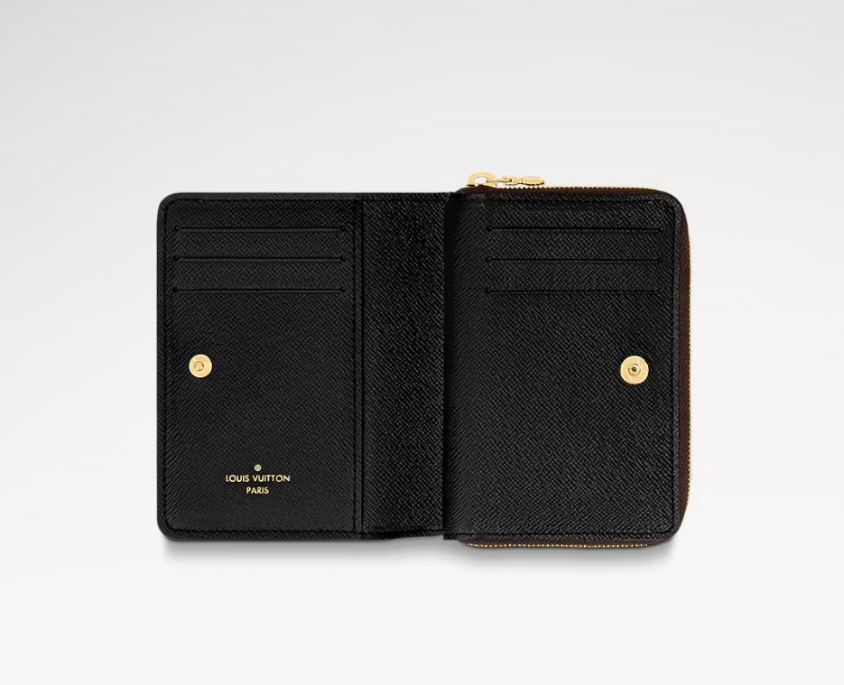 -75%モノグラム・キャンバスで仕立てた「ポルトフォイユ・ルー」。モノグラム・リバース キャンバス製のモノグラム・フラワー モチーフを添えたフロントポケットが、コントラストを描きます。コンパクトなデザインとスクエアシェイプが魅力の財布です。グレインレザーの内装には6つのカードスロットと紙幣用コンパートメント、サイドにはファスナー付きコインポケットをあしらいました。