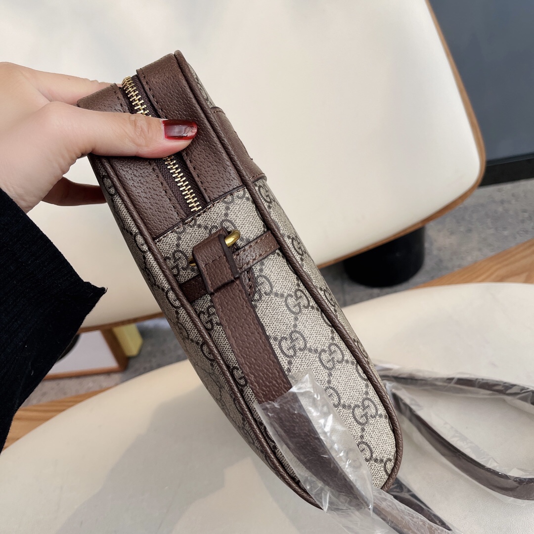コンパクトなフォルムにジップ クロージャーとフロントポケットを付けたショルダーバッグ。グッチの代表的なモチーフ、ダブルGとウェブ ストライプをクラシカルに組み合わせた〔オフィディア〕ラインには、新たなフォルムやシルエットを取り入れた新作が誕生しています。GGスプリーム キャンバスで仕立て、ダブルGハードウェアをあしらいました。