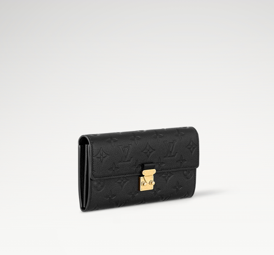 バッグ「メティス」とのコーディネートも楽しめるモノグラム・アンプラント レザーの「ポルトフォイユ・サラ メティス」。フラップには「メティス」を象徴する、ルイ・ヴィトンの伝統的なトランクから着想を得たゴールドカラーのSロックスタイルの留め具をあしらいました。エレガントな長方形のフォルムと複数のポケット、コンパートメント、カードスロットを備えた大容量の内装が特徴です。