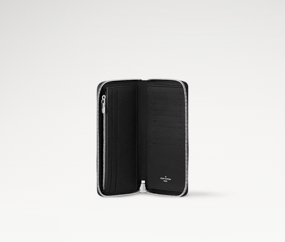 すっきりとした縦型がマスキュリンでありながらエレガントな魅力を放つダミエ・グラフィットの財布「ジッピーウォレット・ヴェルティカル」。ポケットやクレジットカードスロットが充実しており、機能的。