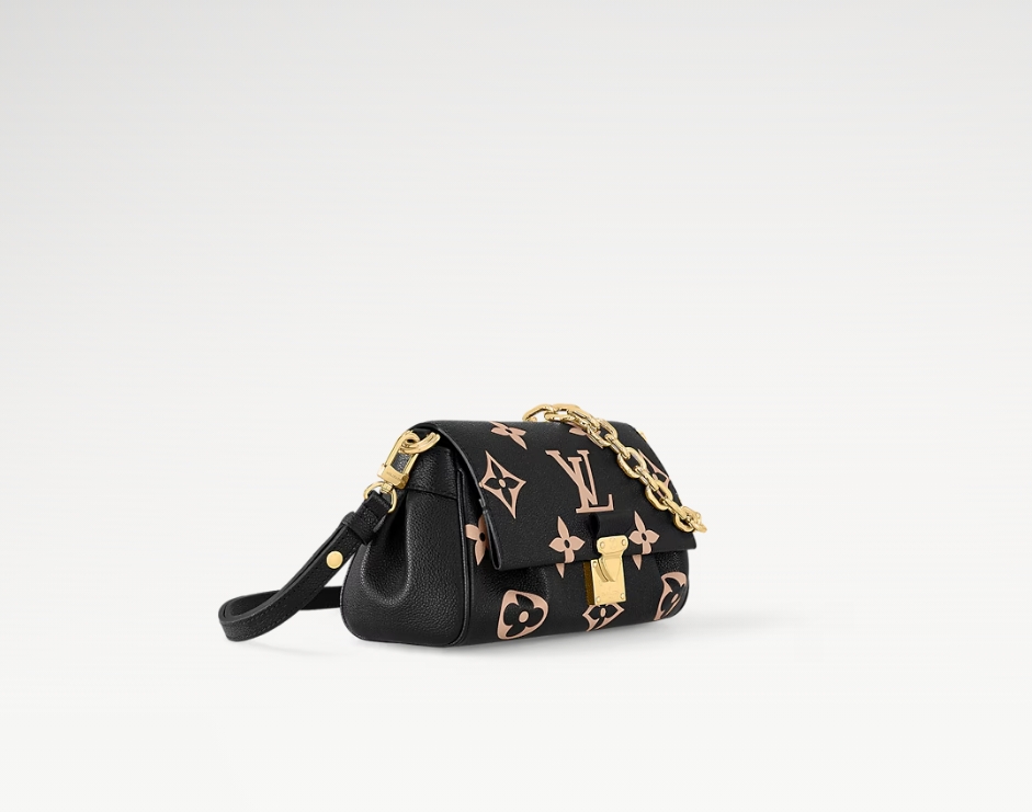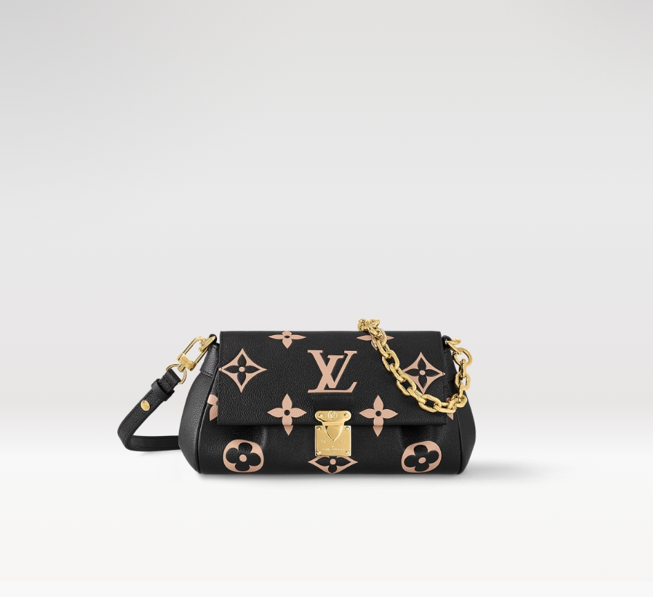 しなやかなグレインレザーにモノグラム・ジャイアント パターンをエンボス加工で施したファッショナブルなバッグ「フェイボリット NM」。フェミニンなプリーツがオートクチュール感を演出し、ゴールドカラーのマグネットスタイルのロック風留め具にルイ・ヴィトンならではの伝統が薫ります。ショートショルダーやクロスボディバッグとしても楽しめる取外し & 調節可能なストラップに加え、イブニングシーンにぴったりのグラマラスな装いを引き立てる着脱可能なゴールドカラーのチェーンをあしらいました。