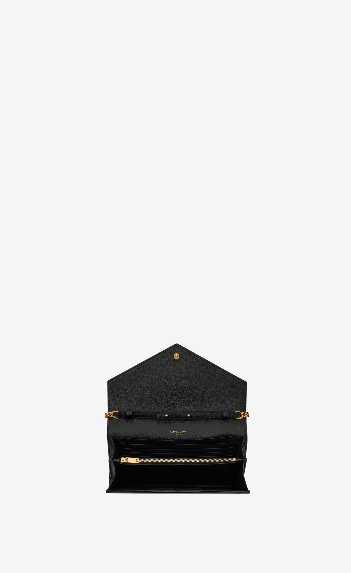 色:黒モノグラムフロントフラップウォレット、メタルYSLレターロゴ、縦柄、V字型、ダイヤモンド柄のミックスキルティングオーバーロック、取り外し可能なチェーンストラップ付き。片付け牛革サイズ:22.5 X 14 X 4 CMゴールデンメタルアクセサリー革の裏地スナップ留めデザイン内部:2つのメインコンパートメントはジッパー式ポケットで区切られています紙幣コンパートメント10枚のカードスロット商品番号620280BOW911000イタリア製