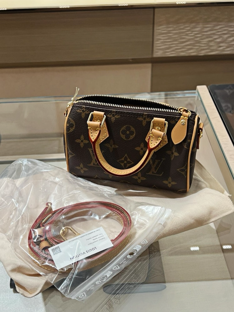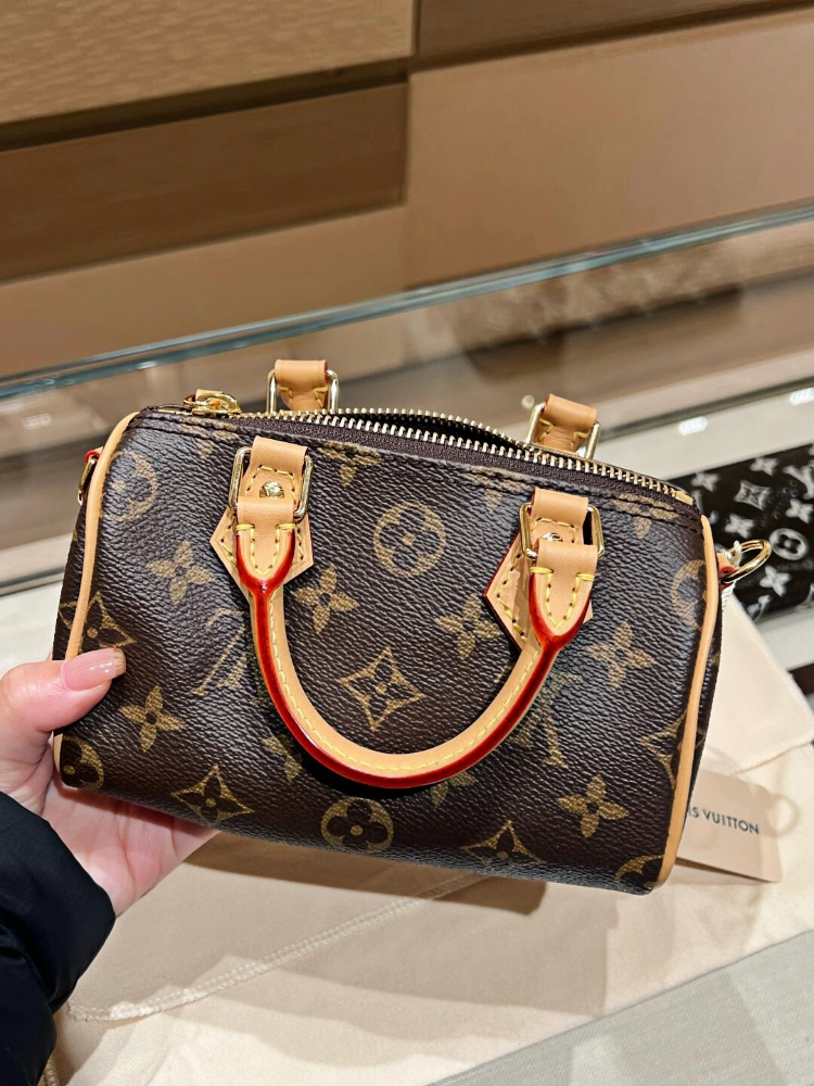 ルイ・ヴィトンのアイコンバッグ「スピーディ」の完璧なミニチュア版をモノグラム・キャンバスで仕上げた「ナノ・スピーディ」。必需品を持ち歩くのに最適なバッグは、ナチュラルレザーとゴールドカラーの金具が美しいデザインを引き立てます。2本のハンドルと、取外し & 調節可能なショルダーストラップで、さまざまな持ち方をお楽しみいただけます。