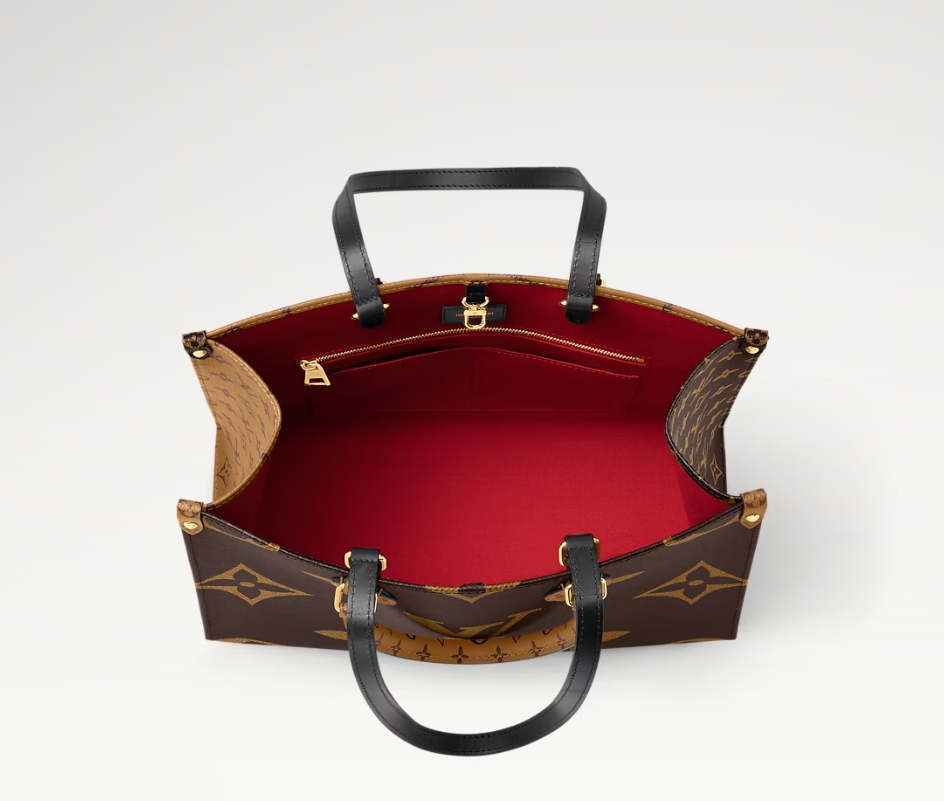 その名の通りビジネスシーンからショッピングまで休む間もないほど活躍するバッグ「オンザゴー MM」。忙しい女性の必需品を持ち運ぶのに充分な高い収納力が魅力です。片面にはクラシカルなジャイアント・モノグラム キャンバスを、もう片面にはモノグラム・リバースを使用し、2つのバッグを一体化したようなデザインに仕上げました。2本ずつ添えたトロンハンドルとショルダーストラップで、さまざまな持ち方をお楽しみいただけます。