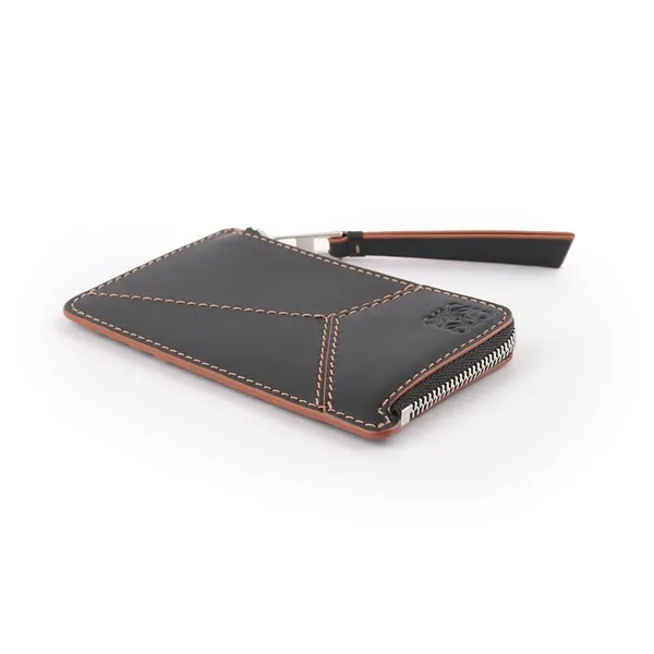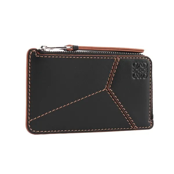 象徴的なパズルバッグの幾何学模様にインスピレーションを受けたクラシックカーフスキン製コインカードホルダー
