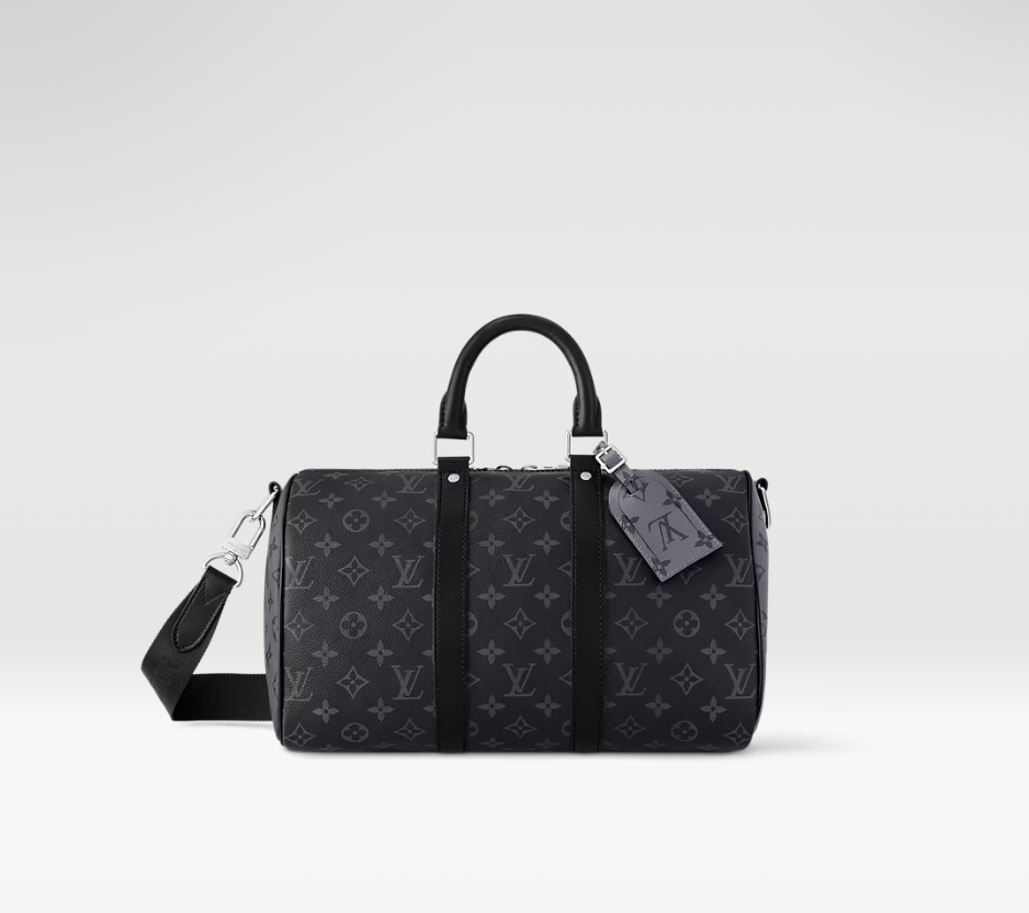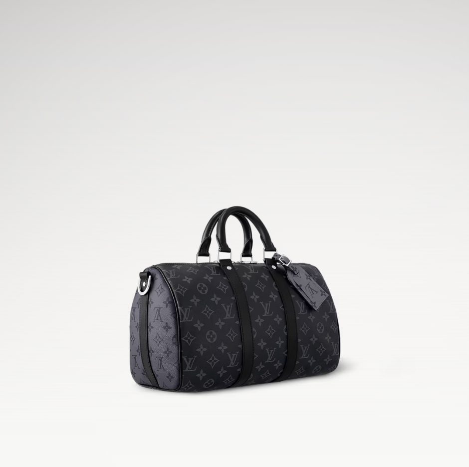 洗練された雰囲気をさりげなく演出する、モノグラム・エクリプス キャンバスを使用した「キーポル・バンドリエール 35」。ブラックレザー製のトップハンドルとサイドバンド、シルバーカラーのメタルパーツがタイムレスなデザインを引き立てます。ショルダーバッグとして快適にお楽しみいただける、取外し & 調節可能なストラップ付き。