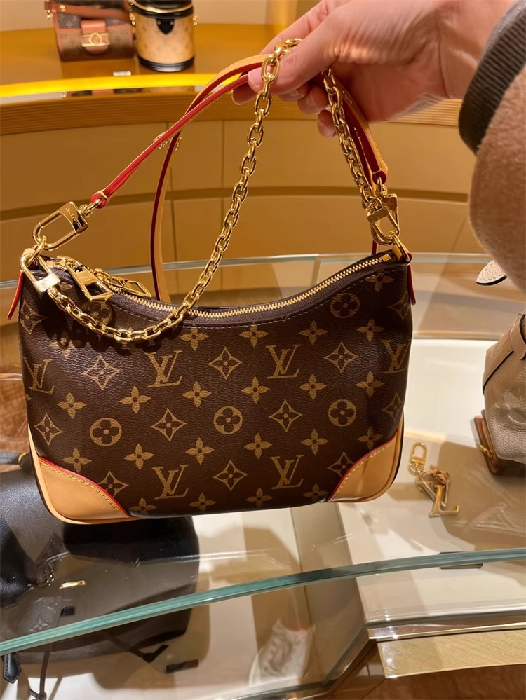 定番のモノグラム・キャンバスを使用した多用途なバッグ「ブーローニュ」。取外し可能なストラップで、クロスボディバッグやロング & ショートショルダーバッグとして楽しめます。ストラップを取外せば小ぶりなチェーンバッグや、フォーマルなシーンにぴったりのクラッチバッグにも。開口部はダブルファスナースタイルに仕上げ、内装にはスマートフォンが入る大きさのフラットポケットをあしらいました。