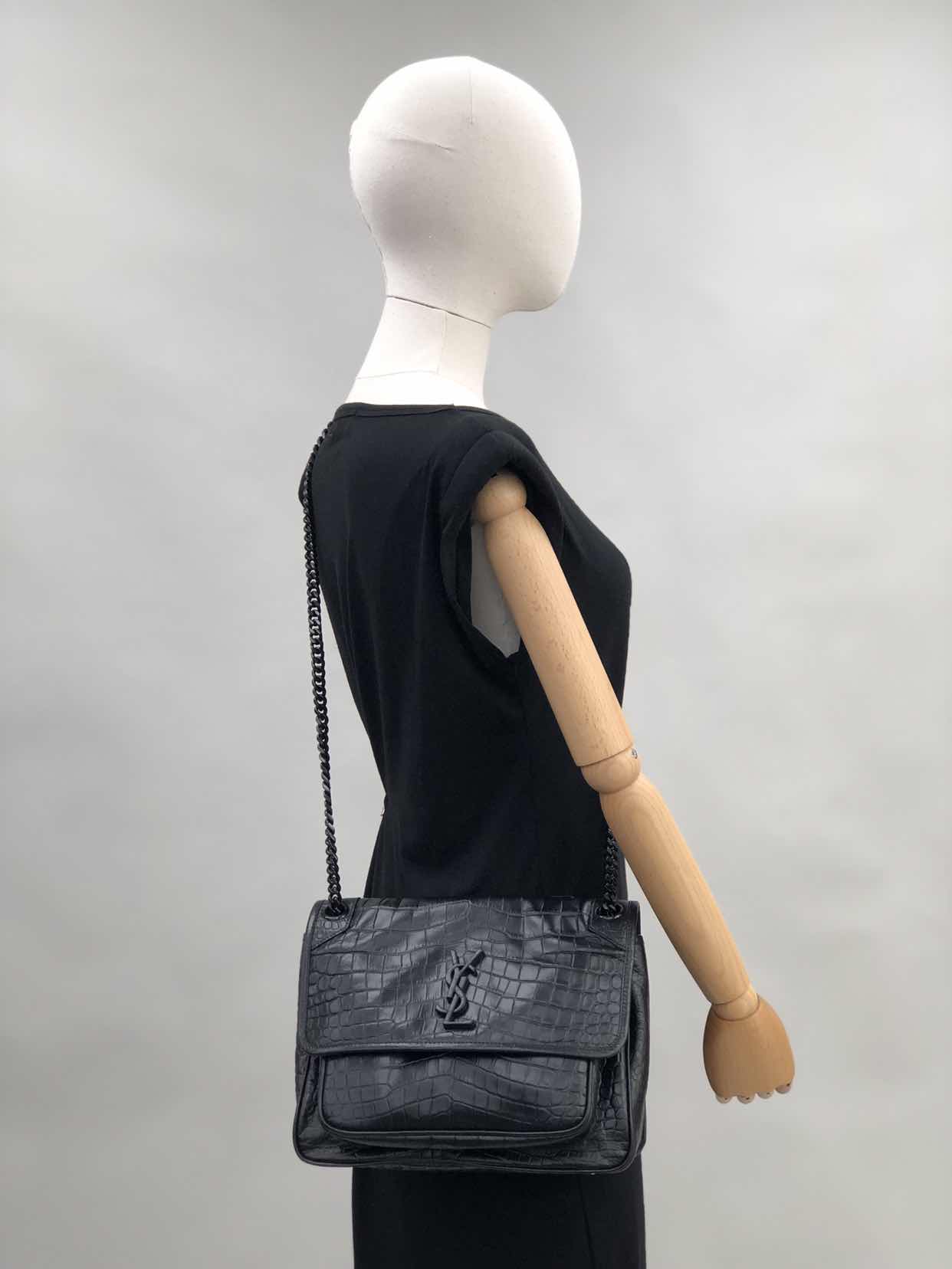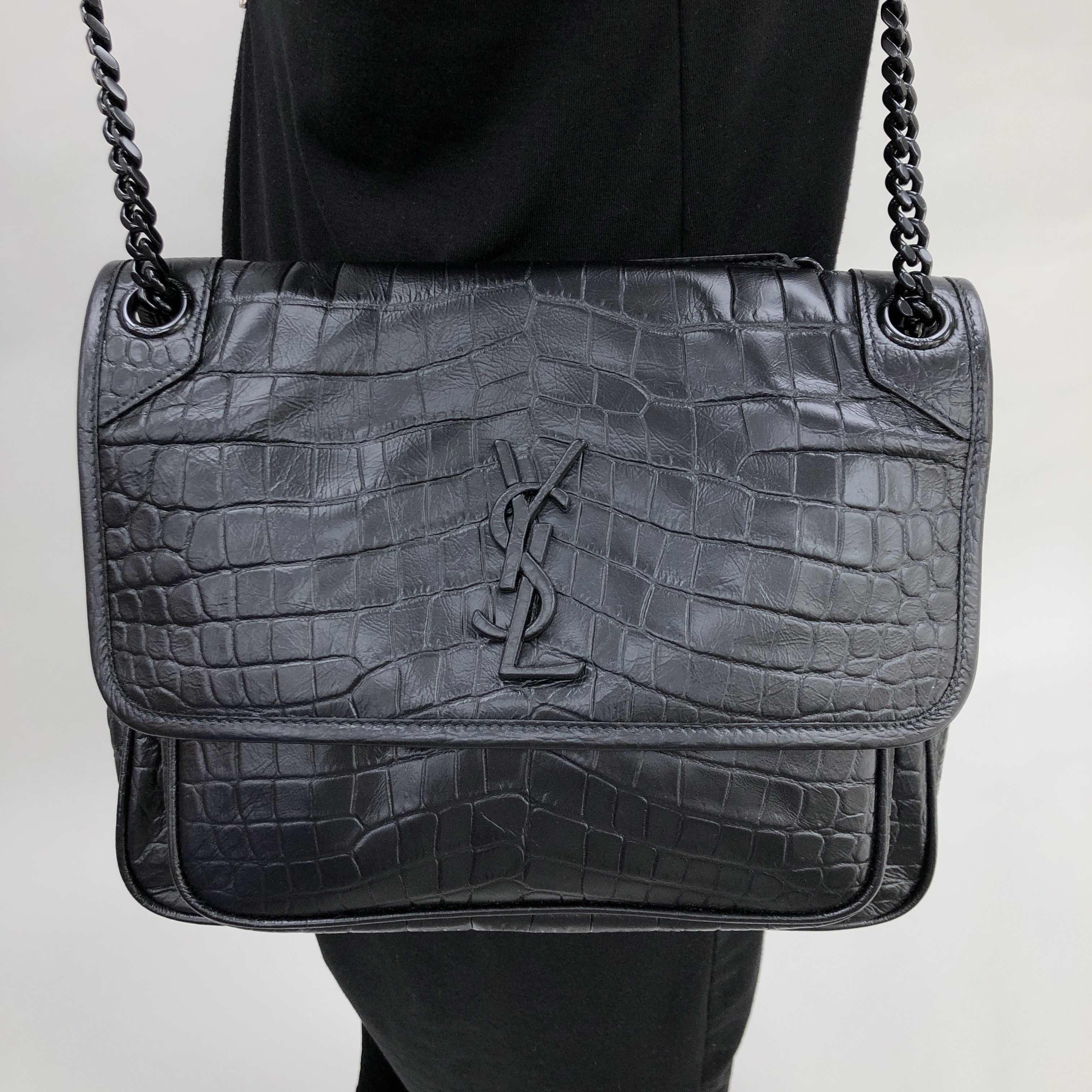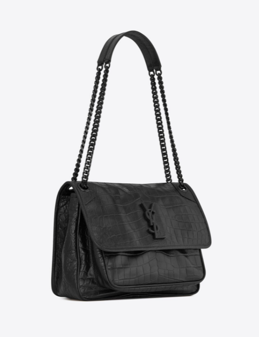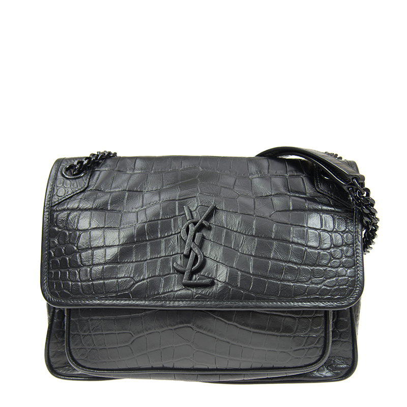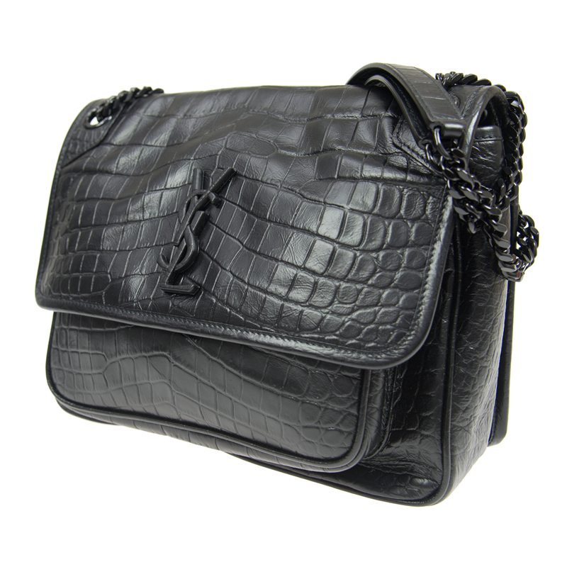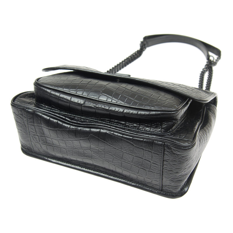 NIKIミディアムソフトクロコダイルエンボスレザーハンドバッグ