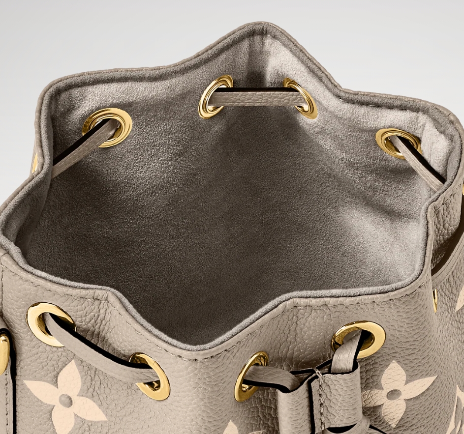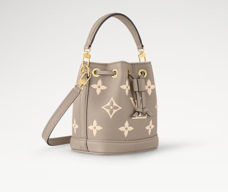 モノグラム・パターンをエンボス加工で施したしなやかなモノグラム・アンプラント レザーを使用し、バイカラーでアップデートした「ナノ・ノエ」。アイコニックなバッグ「ノエ」をミニチュアサイズにアレンジした、毎日の必需品をスタイリッシュに持ち運べるアイテムです。実用的なドローストリング開閉式に加え、着脱できるハンドルと取外し & 調節可能なショルダーストラップでさまざまな持ち方を楽しめます。