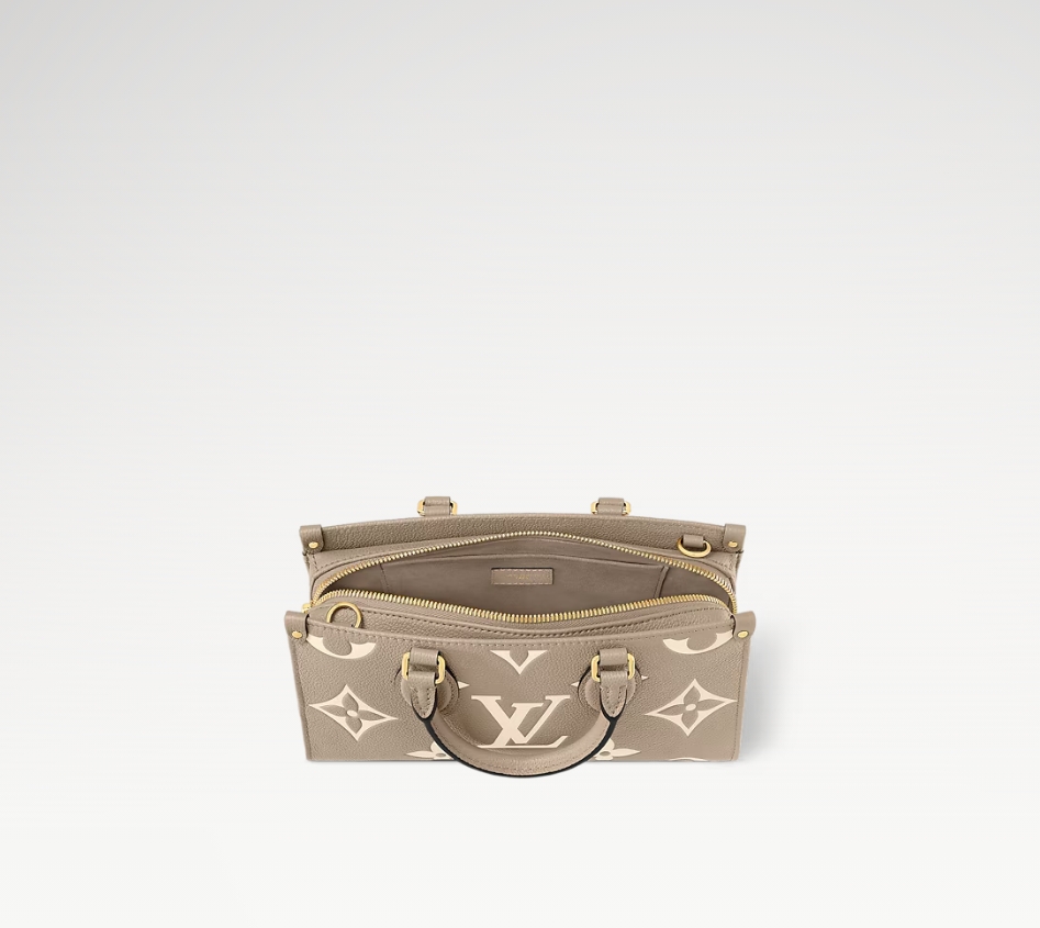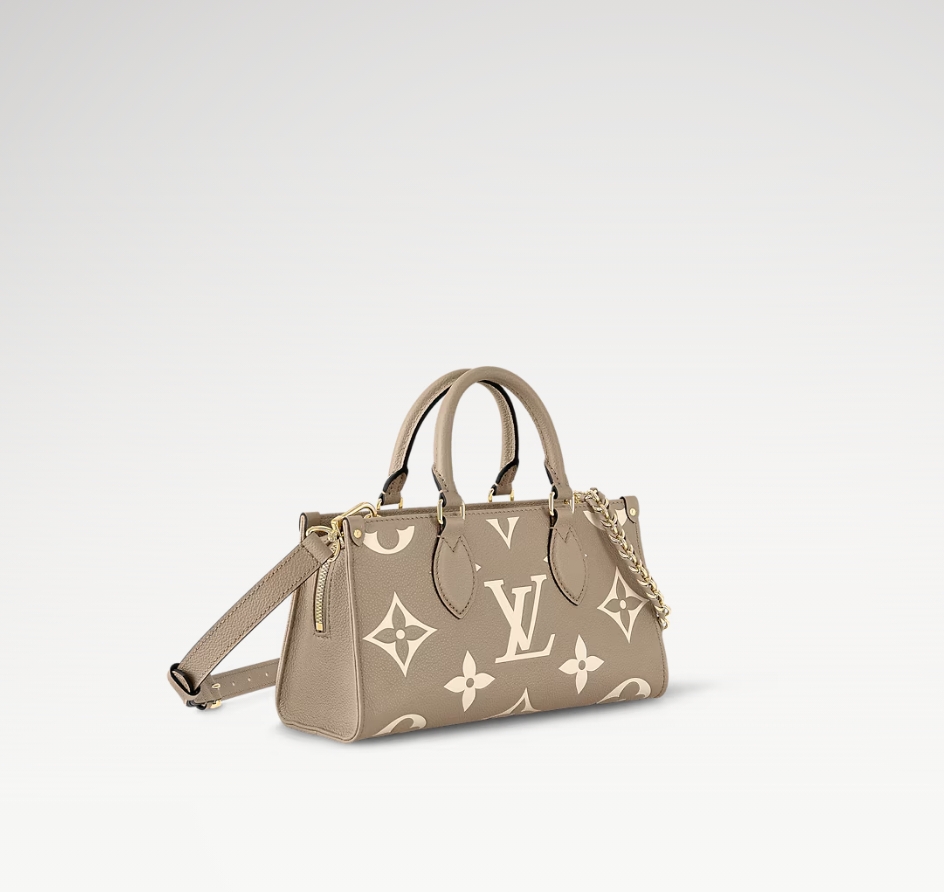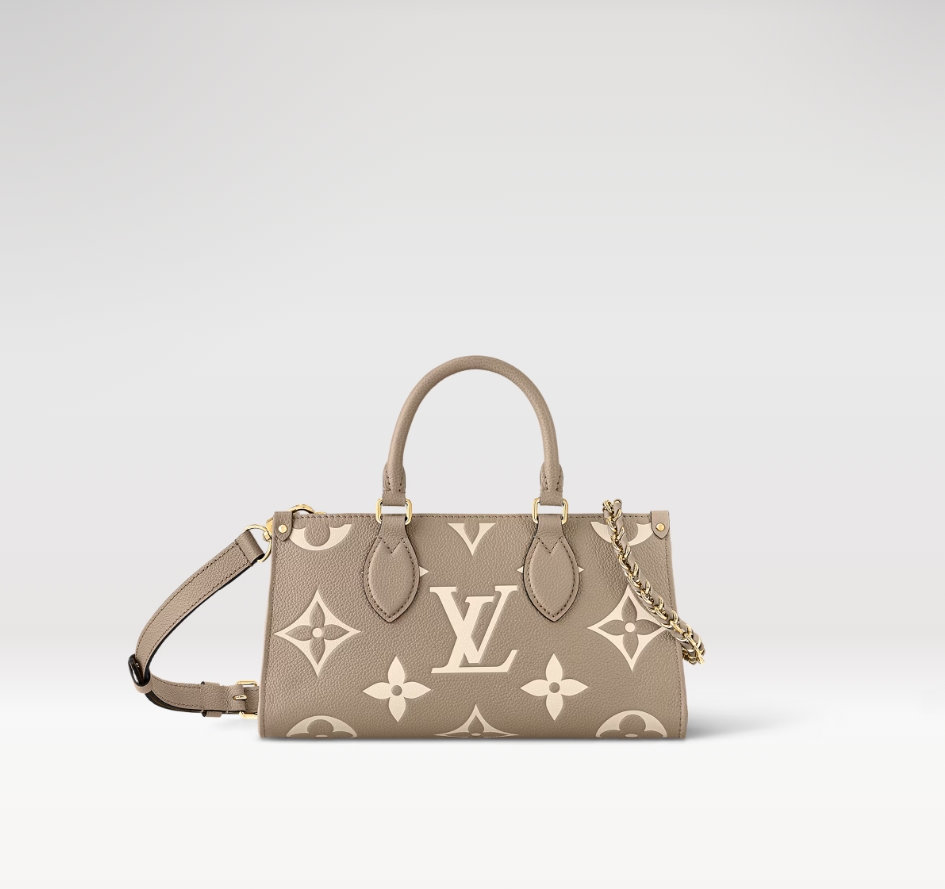 バッグ「オンザゴー」を均整の取れた美しい横長のシルエットで再解釈した「オンザゴー EW」。トーナルなモノグラム・ジャイアント パターンをエンボス加工で施したモノグラム・アンプラント レザーで仕上げました。毎日の必需品を持ち運ぶのにぴったりな整理しやすい内装を備えたコンパクトなモデルです。2本の関節式のトップハンドルと取外し可能なチェーン & レザーのストラップで、さまざまな持ち方を楽しめます。