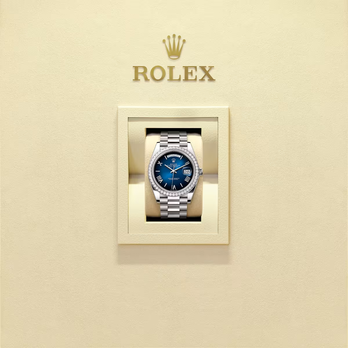 デイデイト 40 オイスター、40 mm、ホワイトゴールド、ダイヤモンド m228349rbr-0045 2024