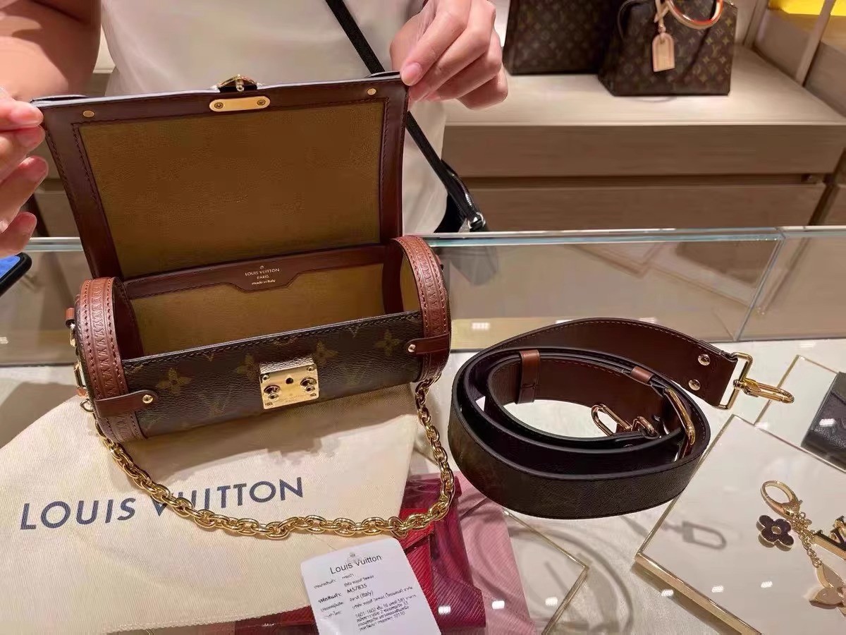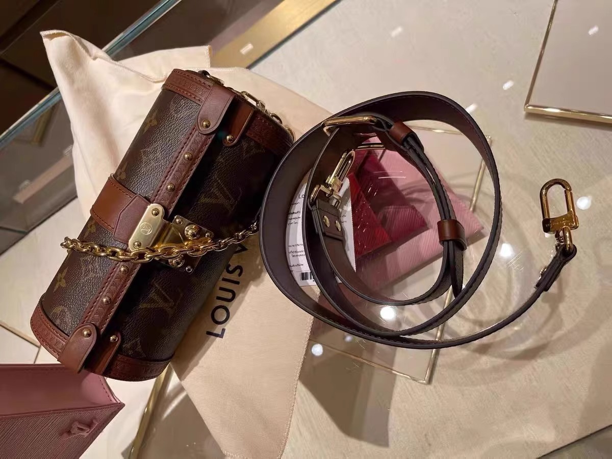 ルイ・ヴィトンのアーカイヴから着想を得てニコラ・ジェスキエールがフェミニン & カジュアルな新しいフォルムでアップデートした「パピヨントランク」。アイコニックなダッフルバッグ「パピヨン」を、トレンドにマッチした構築的でジオメトリカルなシルエットに仕上げました。Sロックスタイルの留め具やエンボス加工で施したLV イニシャルが並ぶトリミング、スタッズが、メゾンが誇るトランク製造の歴史にオマージュを捧げています。