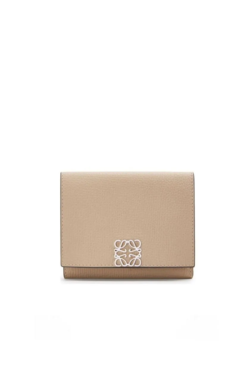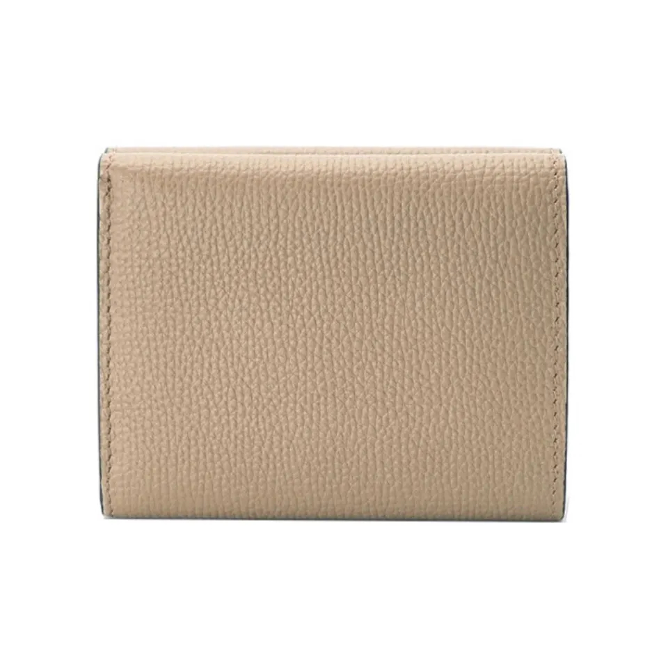 ペブルグレインカーフスキン製のウォレット。パラジウムアナグラム付きのバックル留め、プレススタッド留め。