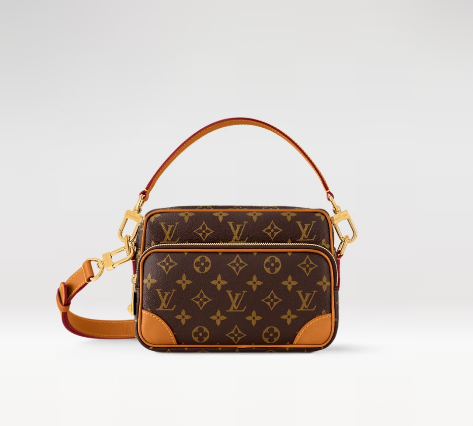 「モノグラム・アーカイヴ」コレクションの一部として登場した、トレンド感のある小ぶりなバッグ「ナイル」。モノグラム・キャンバスに、ヌメ革のトリミングを施しました。ヴィンテージ風のディテールとモダンなエレガンスを融合したアイテムは、補強されたコーナーやファレル・ウィリアムスが新たに取入れたパール風のファスナー引き手が特徴。取外し可能なハンドルと着脱できるストラップでさまざまな持ち方を楽しめます。