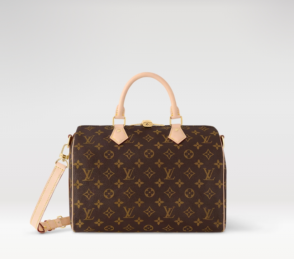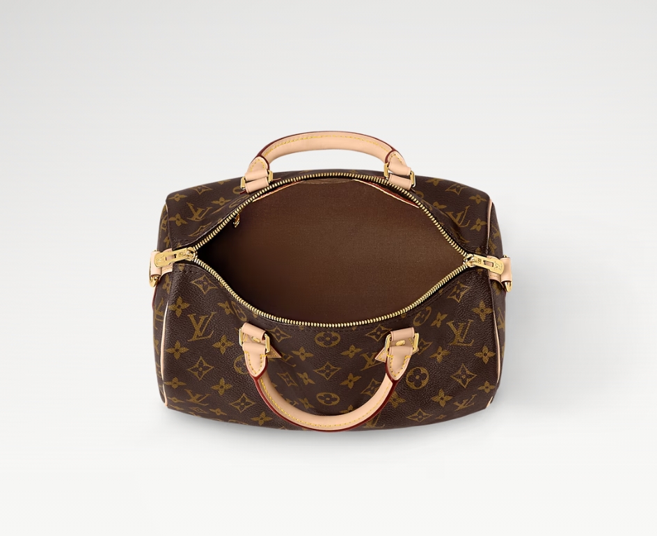 モノグラム・キャンバスで仕上げた「スピーディ・バンドリエール 30」。日常生活にぴったりのシティバッグです。「スピーディ」の前身であるバッグ「エクスプレス」は、1930年代の旅人のために作られたもの。その名は加速化が著しかった当時の移動手段にヒントを得ています。一目でそれと分かる独特のシルエット、ロール仕上げのレザーハンドル、刻印を施したパドロック、取外し可能なストラップなど、すべてのディテールが「スピーディ」を特別な存在にしています。本製品は折り畳んだ状態でお届けいたします。これは、メゾンを象徴する折り畳んでトランクに収納できるソフトラゲージの伝統に由来するものです。予めご了承ください。