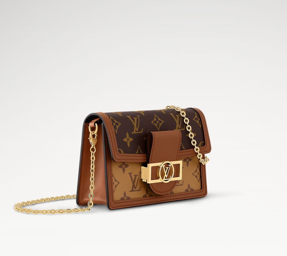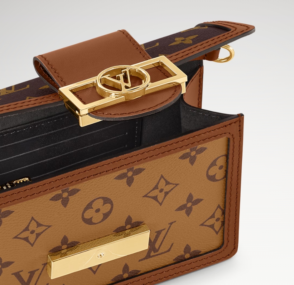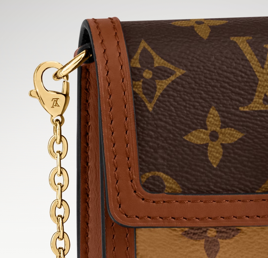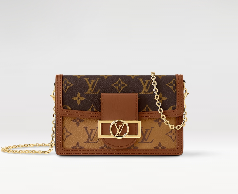 モノグラム・キャンバスとモノグラム・リバース キャンバスを組み合わせた「ポルトフィーユ・ドーフィーヌ」。ヴィンテージ感漂うデザインをカーフレザーのトリミングとLV サークルのクラスプで仕上げた、アイコニックな「ドーフィーヌ」コレクションを再現したアイテムです。すっきりとしたスタイルに抜群の収納力を備え、取外し可能なゴールドカラーのチェーン付きでさまざまな持ち方をお楽しみいただけます。
