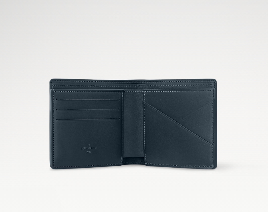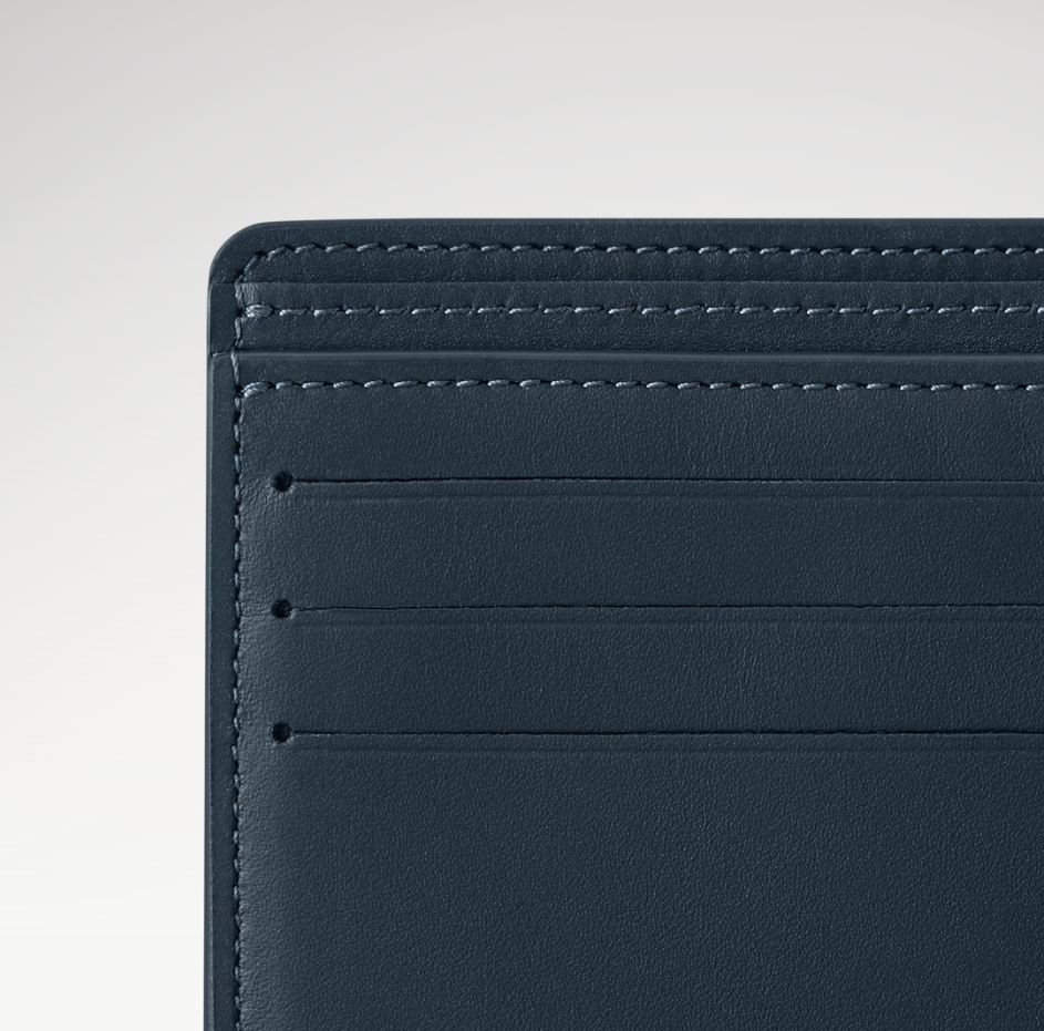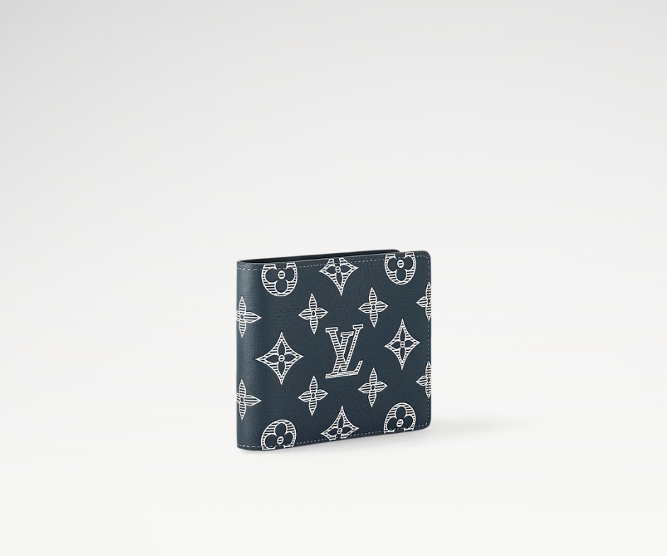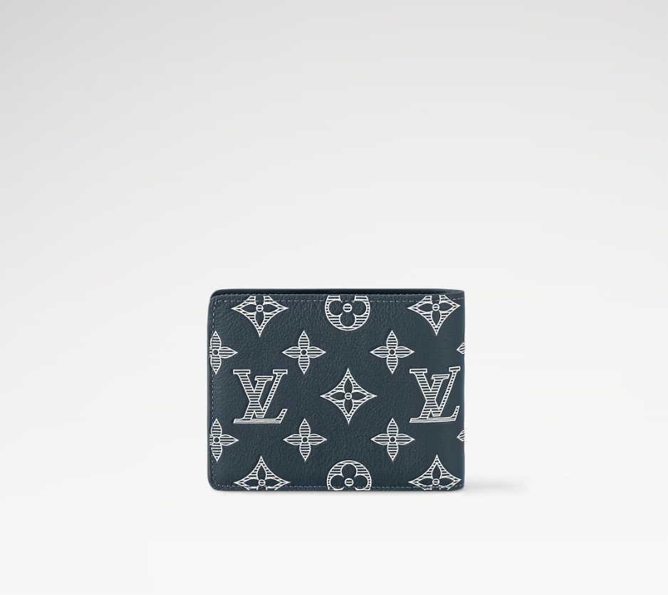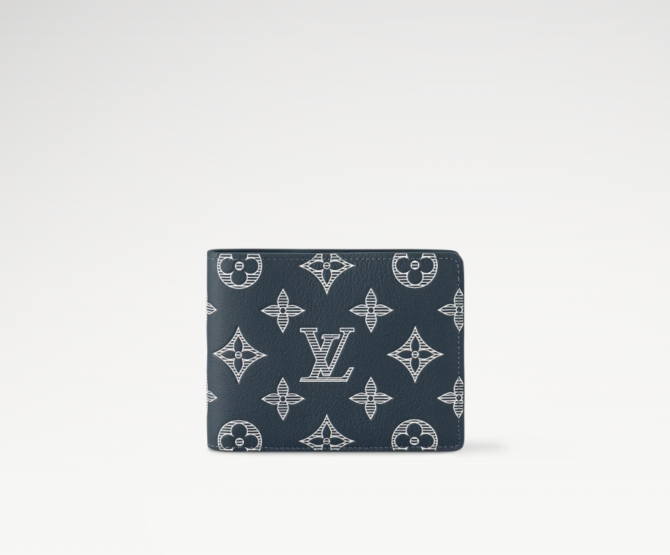 モノグラム・シャドウ レザーでコンパクトに仕上げた「ポルトフォイユ・ミュルティプル」。ブルー & ホワイトの色使いがモダンな印象を演出します。しなやかなカーフレザーとエンボス加工したモノグラム・パターンがもたらす心地良い手触りが魅力です。実用的な複数のスロットとポケット付き。