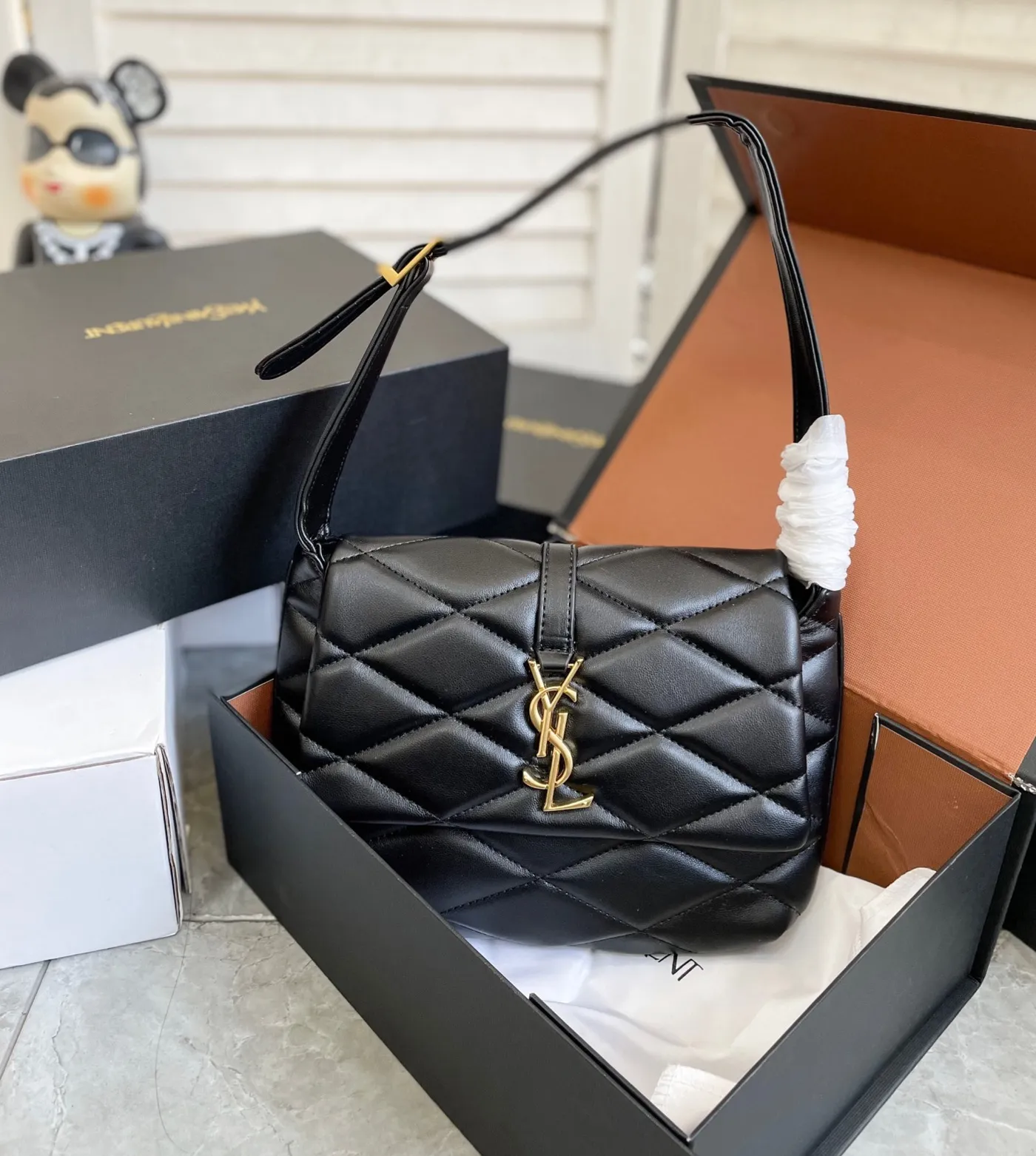 【SAINT LAURENT(サンローラン)】LE 57 ショルダーバッグ(ラムスキン/キルティング)Le 57 Shoulder Bagサンローラン モノグラム フラップ付きショルダーバッグ♡アイコニックなYSLシグネチャー、ダイヤモンドキルティングのオーバーステッチが特徴です。多数の雑誌やネット記事で取り上げられている、注目の新作バッグ♡ベーシックなデザインで、流行に左右されず長年ご愛用頂けるアイテムです♪ラムスキン 100%寸法:24 X 18 X 5.5 CMハンドルの高さ:21 CMブロンズ調メタル金具マグネットスナップクロージャー外側:バックにオープンポケット X 1内側:メインコンパートメント X 1、スモールオープンポケット X 1裏地:ライトスエード商品番号 698567AAAO01000製 イタリア