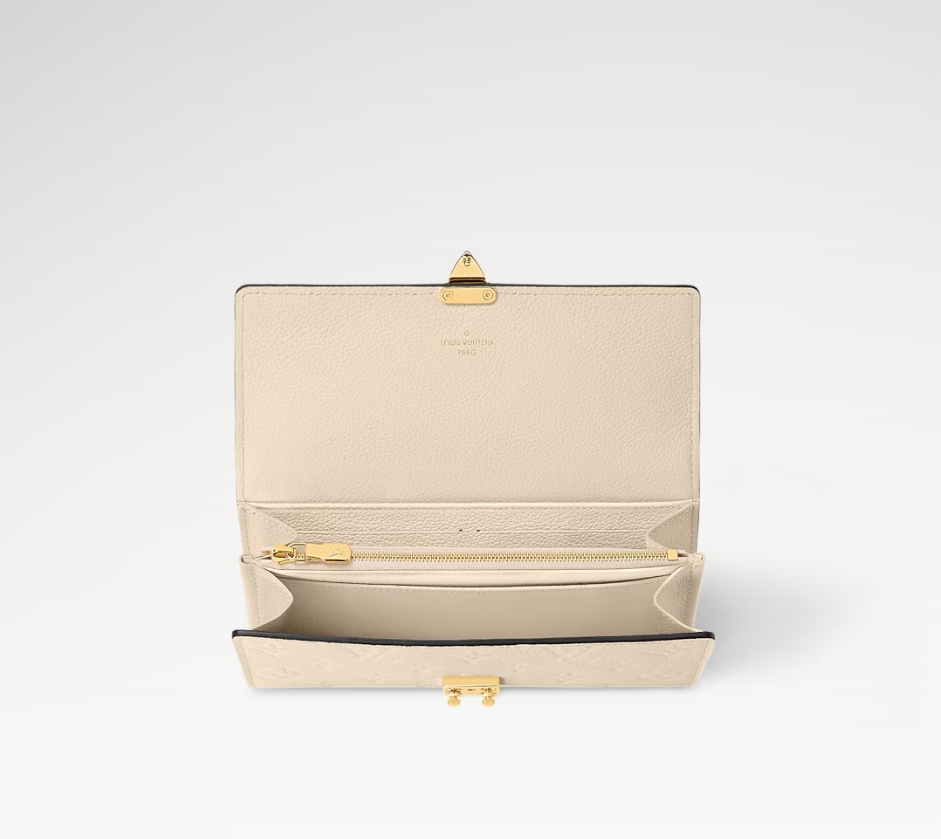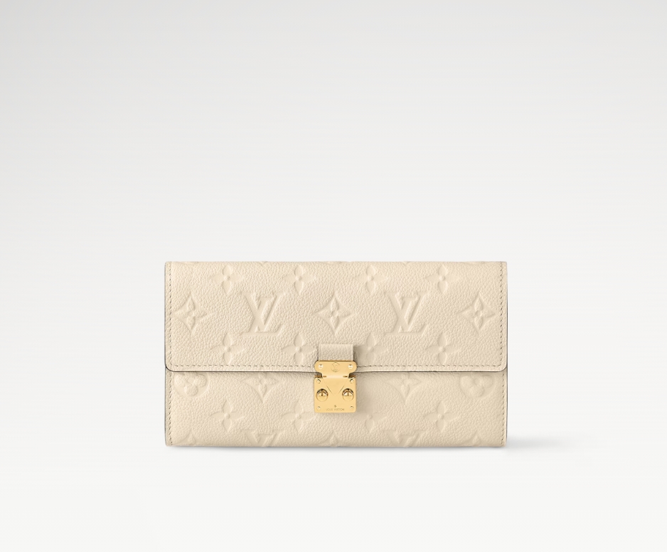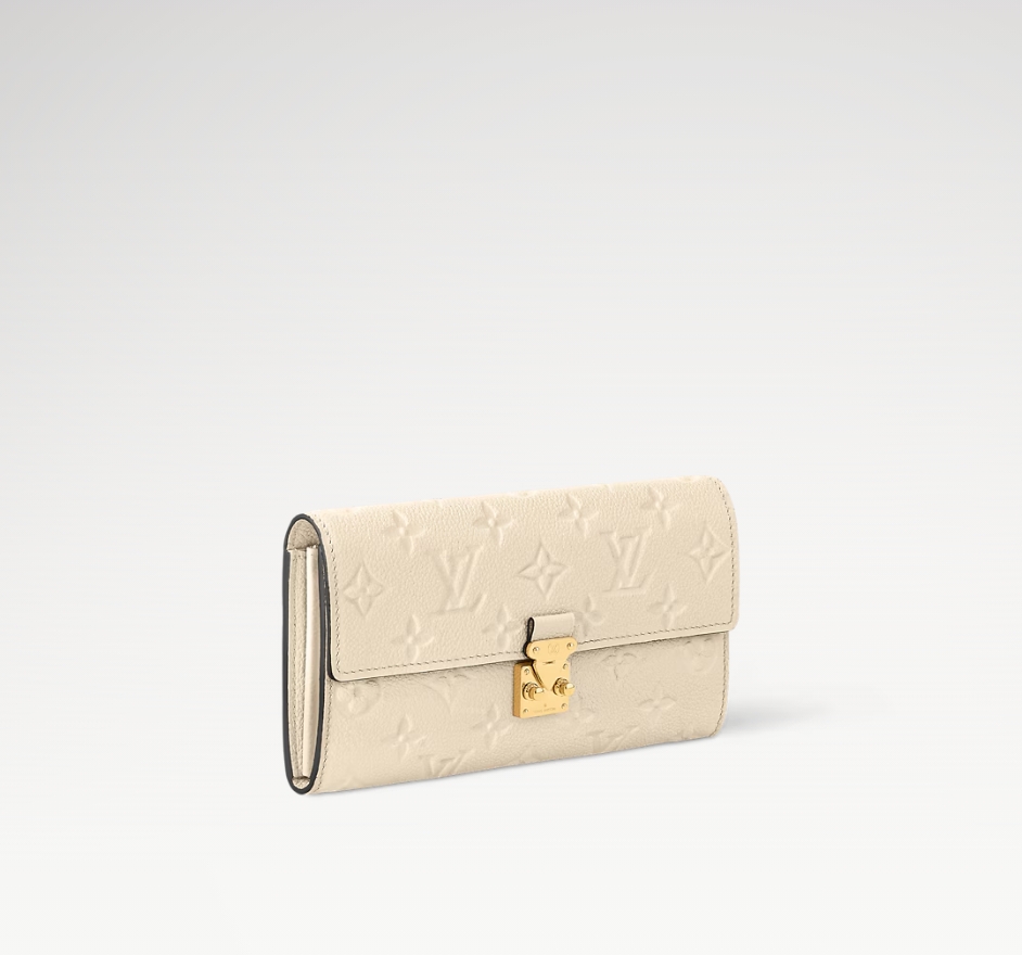 バッグ「メティス」とのコーディネートも楽しめるモノグラム・アンプラント レザーの「ポルトフォイユ・サラ メティス」。フラップには「メティス」を象徴する、ルイ・ヴィトンの伝統的なトランクから着想を得たゴールドカラーのSロックスタイルの留め具をあしらいました。エレガントな長方形のフォルムと複数のポケット、コンパートメント、カードスロットを備えた大容量の内装が特徴です。