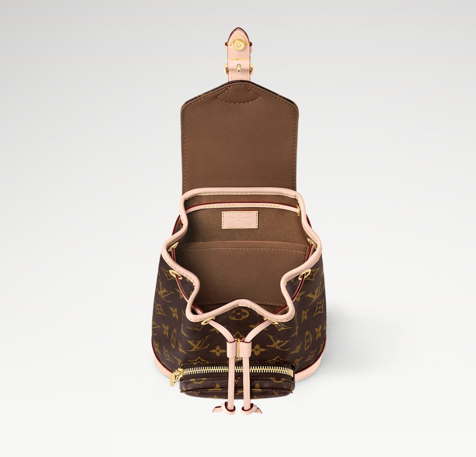 モノグラム・キャンバスでトレンディなシルエットに仕上げた「モンスリ MINI」。底部分にはカウハイドレザーを、トリミングにはヌメ革を使用しています。スタイリッシュに持ち運べるトップハンドルと調節可能な2本のモノグラム・キャンバスのストラップ付き。ドローストリングとマグネット開閉式で、持ち物を安全に持ち運べます。