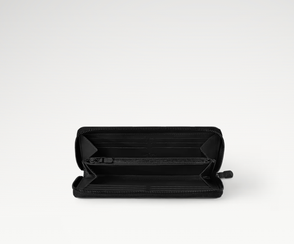 モノグラム・シャドウ レザーで仕立て、ブラックのメタルパーツをあしらった「ジッピーウォレット・ホリゾンタル」。伝統的な「ジッピーウォレット・ヴェルティカル」を再解釈しより機能的な横型にアップデートしました。ラウンドファスナー開閉式の実用的なデザインに、ファスナー付きポケットを中央に配したメインコンパートメントと各サイドに6つずつ並べたカードスロット、紙幣や領収書用の2つのフラットポケットを備えています。