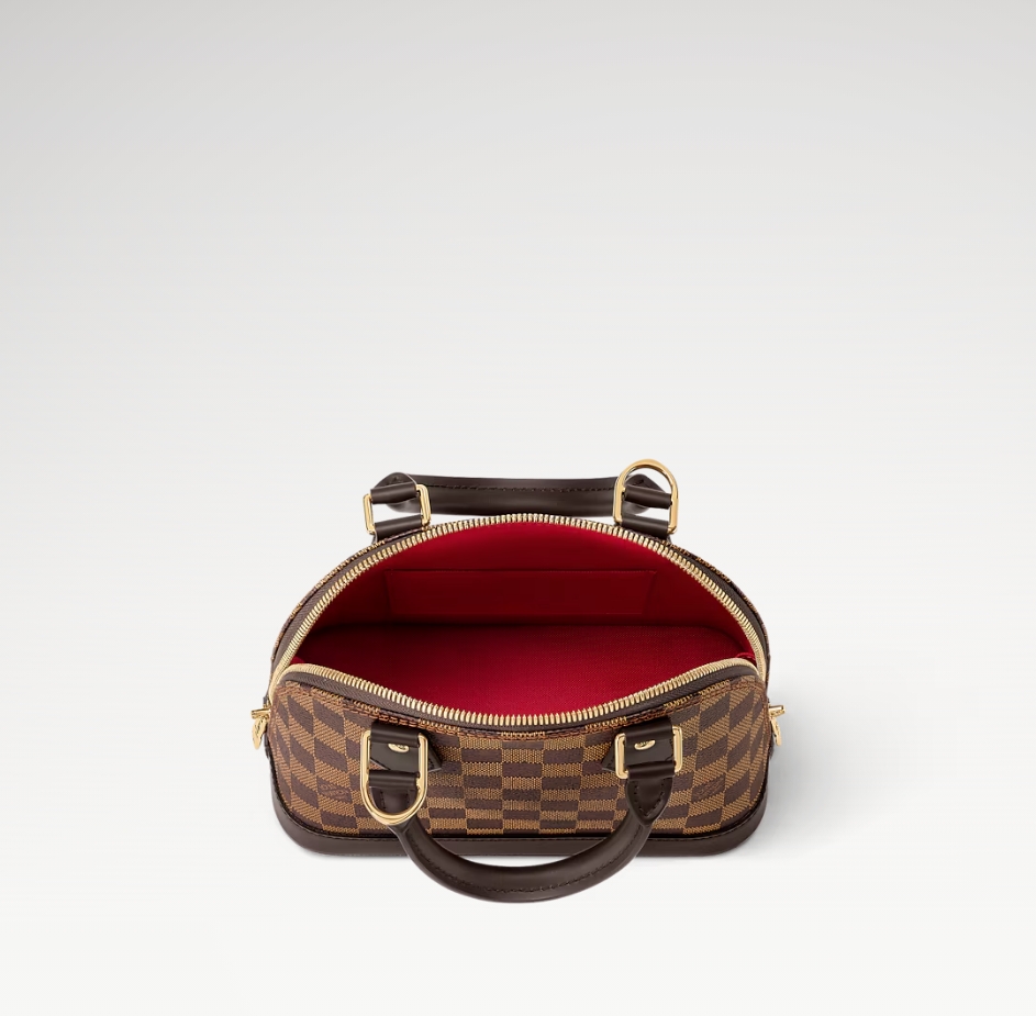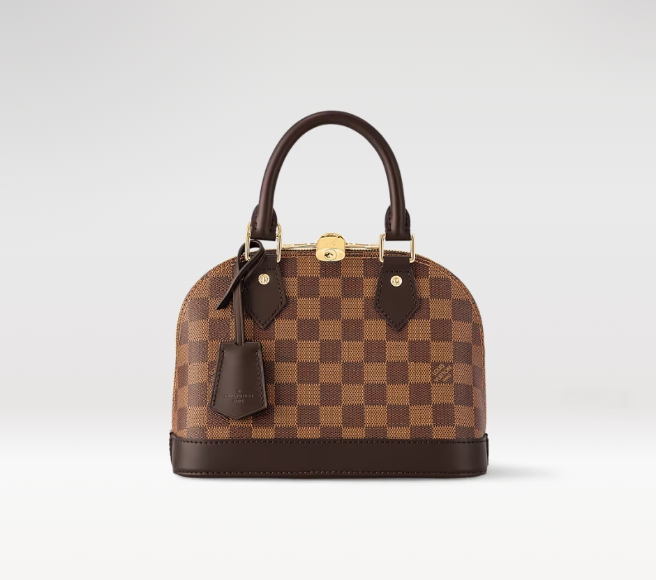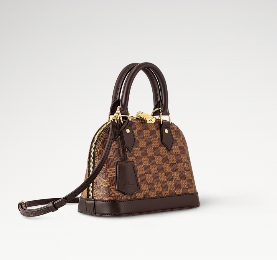 1934年に発表されたアール・デコ調のオリジナルモデルの特徴を継承した「アルマ BB」。グラフィカルなダミエ・エベヌ キャンバスにゴールドカラーのパドロック(錠前)やキー、2本のトロンハンドル、そしてシックなレザーのキーベルをあしらいました。ルイ・ヴィトンならではのディテールがタイムレスなエレガンスを放ちます。取外し & 調節可能なストラップでクロスボディバッグとしても使用できる、チャーミングな小ぶりのアイテム。