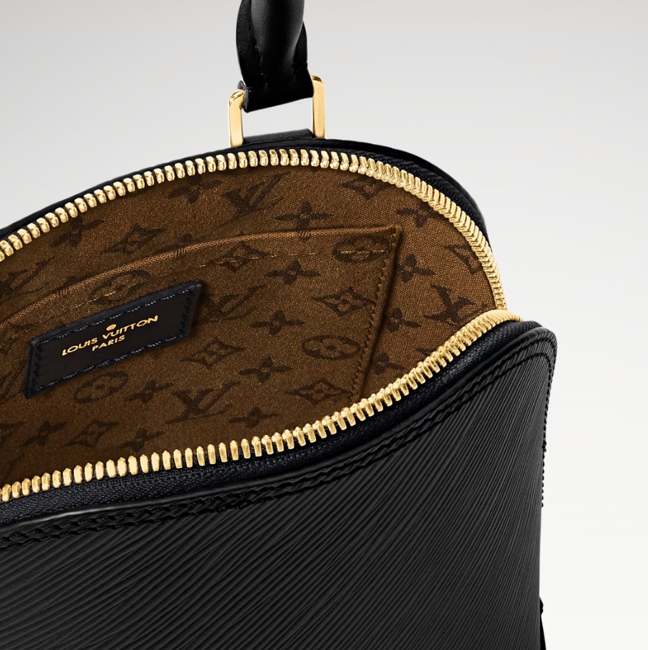 「アルマ」シリーズにフレッシュで洗練されたスタイルをもたらす「アルマ・バックパック」。エピ・レザーで鮮烈なステートメントを印象付けた2024春夏のランウェイでは、モデルがトップハンドルを持ってこの上なくシックな雰囲気を演出しました。刻印入りのパドロック(錠前)とレザーのキーベルのディテールに加え、多彩なスタイリングが楽しめる取外し & 調節可能な2本のストラップを備えています。