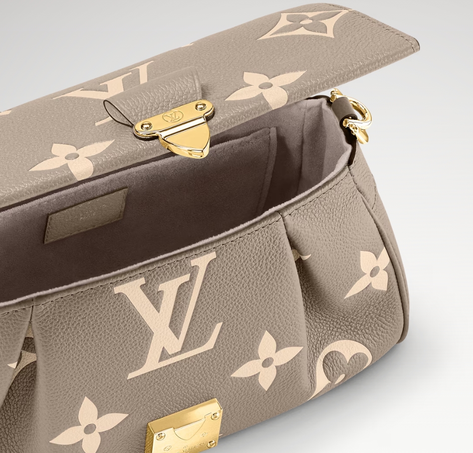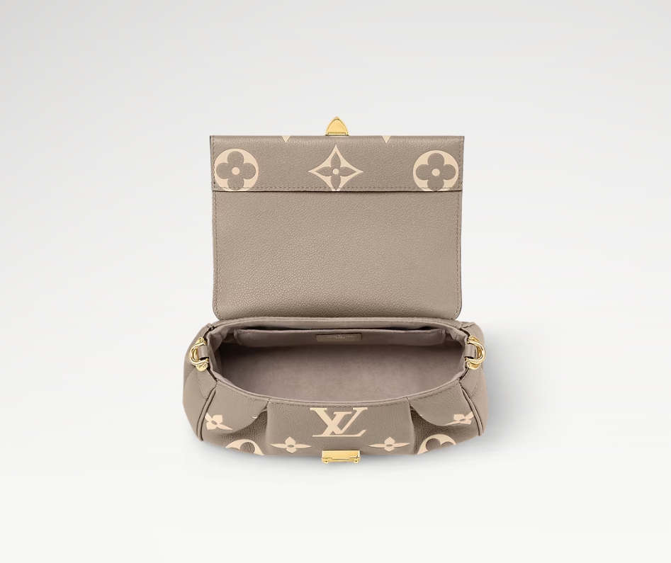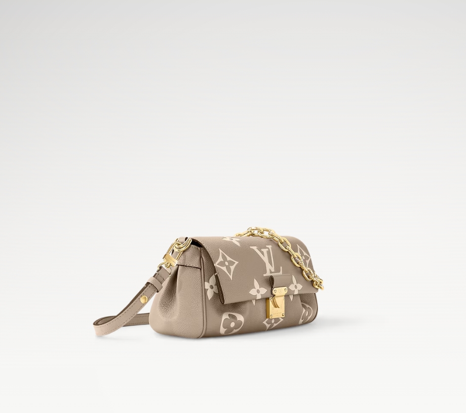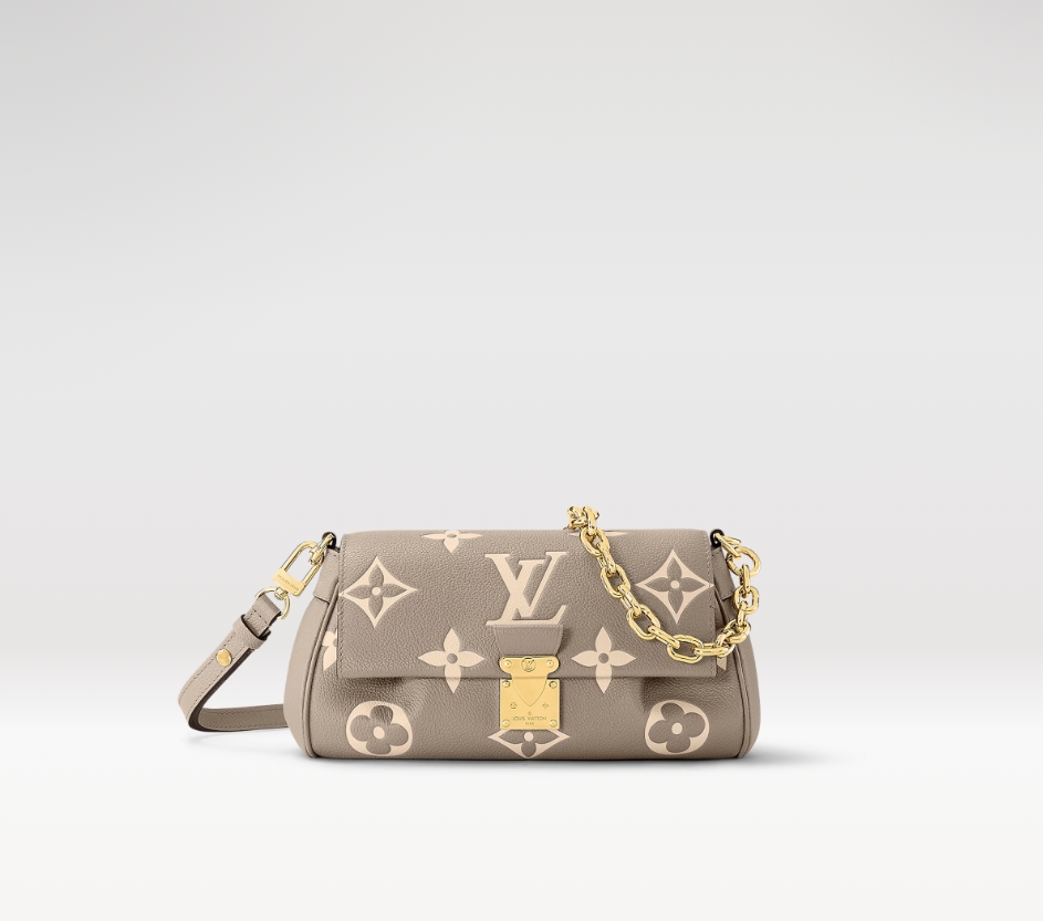 しなやかなグレインレザーにモノグラム・ジャイアント パターンをエンボス加工で施した「フェイボリット NM」。ファッショナブルなバッグです。フェミニンなプリーツがオートクチュール感を演出し、ゴールドカラーのマグネットスタイルのロック風留め具に、ルイ・ヴィトンならではの伝統が薫ります。ショートショルダーやクロスボディバッグとして楽しめる取外し & 調節可能なストラップに加え、イブニングシーンにぴったりのグラマラスな装いを引き立てる着脱可能なゴールドカラーのチェーンをあしらいました。