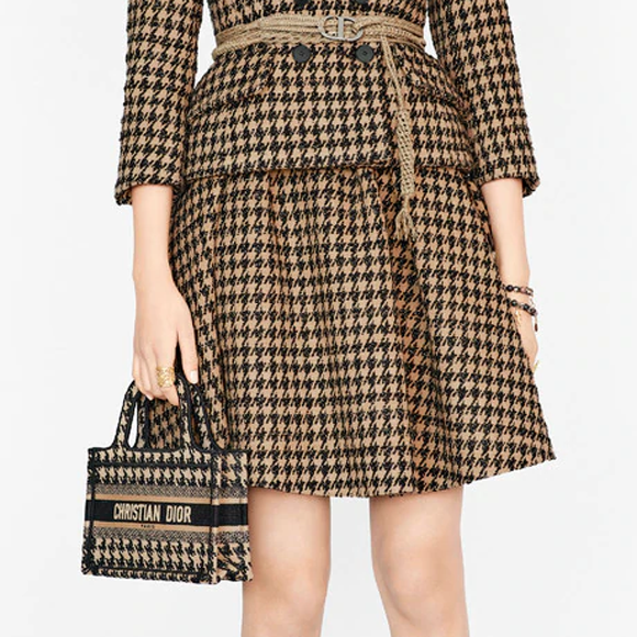 このDior Book ToteミニトートバッグはDiorクリエイティブディレクターのマリアGraza Chiuriのオリジナルデザインを採用しており、Diorの審美を表現する主力商品です。このミニバッグは小物を収納するためにデザインされています。千鳥チェックと全身刺繍を採用し、正面にはクリームホワイトの「クリスティーン・ディオール」のロゴが飾られています。このトートバッグはDiorの優れた技術を十分に体現しています。他の小物に合わせてアクセサリーやMitzahスカーフを配合できます。お互い呼応して渾然一体となります。