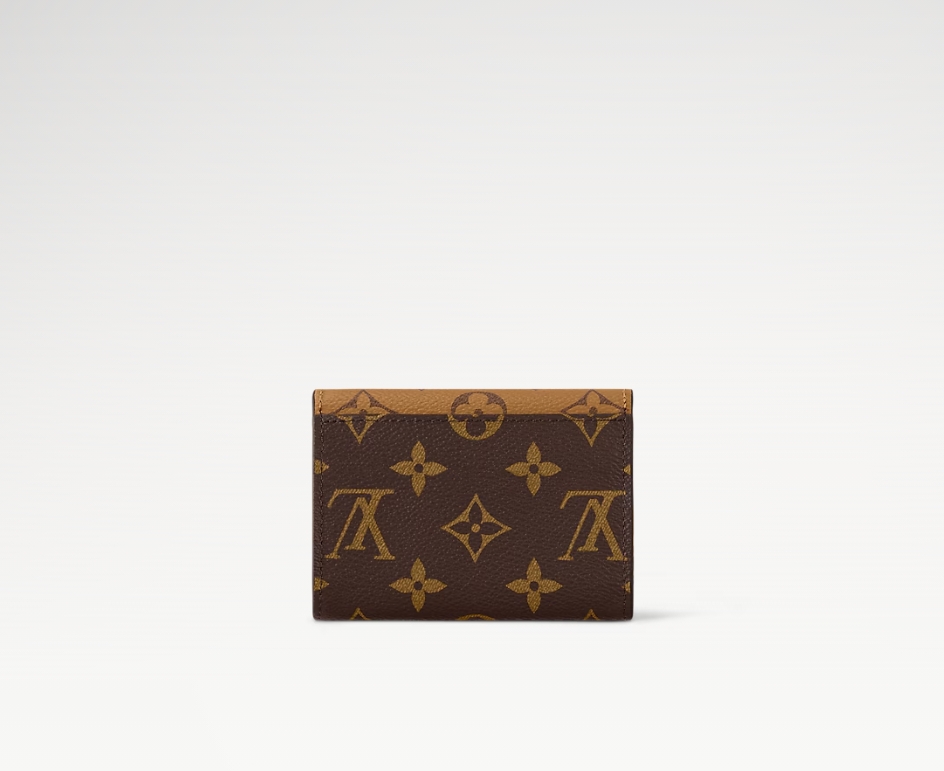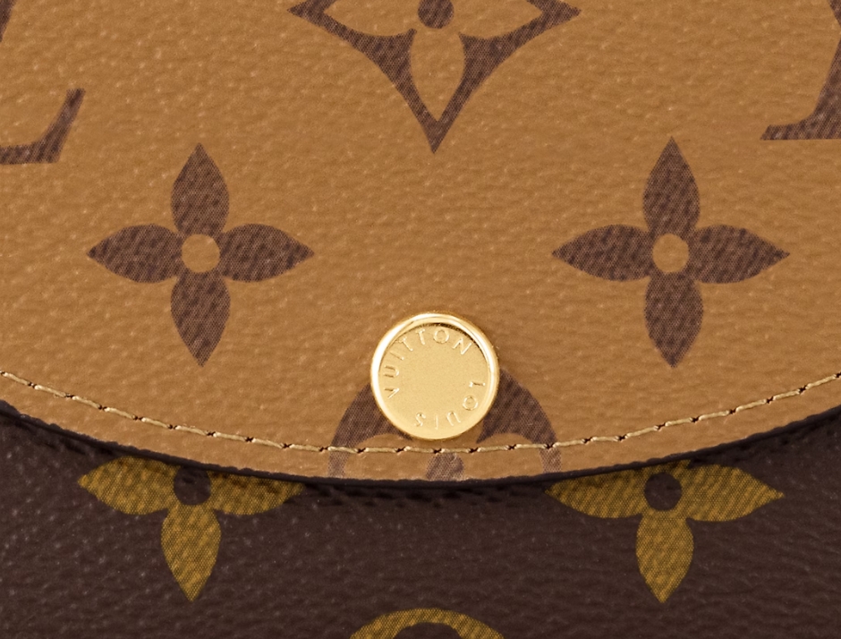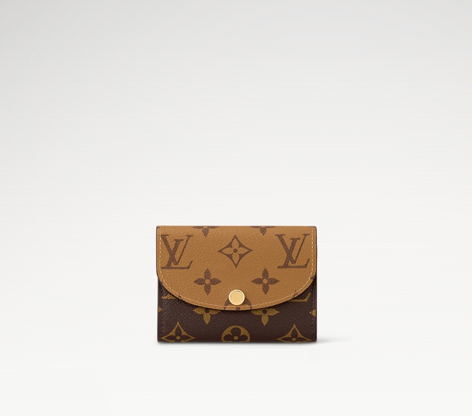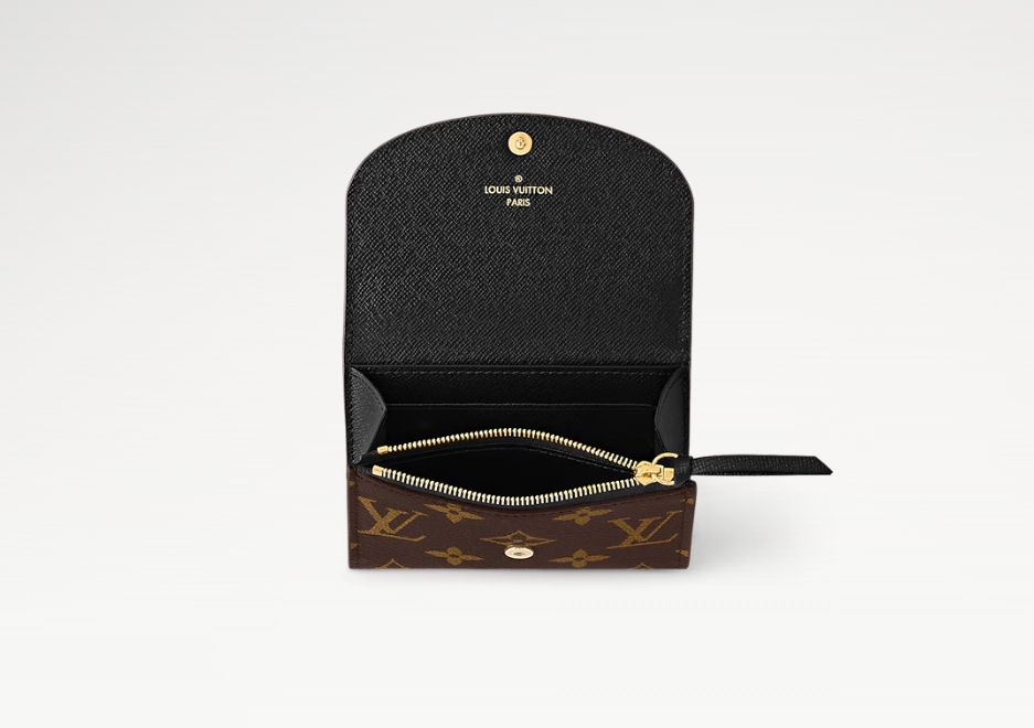 モノグラム & モノグラム・リバース キャンバスを組み合わせた、洗練された個性を放つ「ポルトモネ・ロザリ」。丸みを帯びたフラップに、刻印を施したゴールドカラーのスナップボタンをあしらった、小ぶりの財布です。内側にはフラットポケット、ファスナー付きコインポケット、2つのカードスロットを備え、背面にはフラットポケットが配されています。