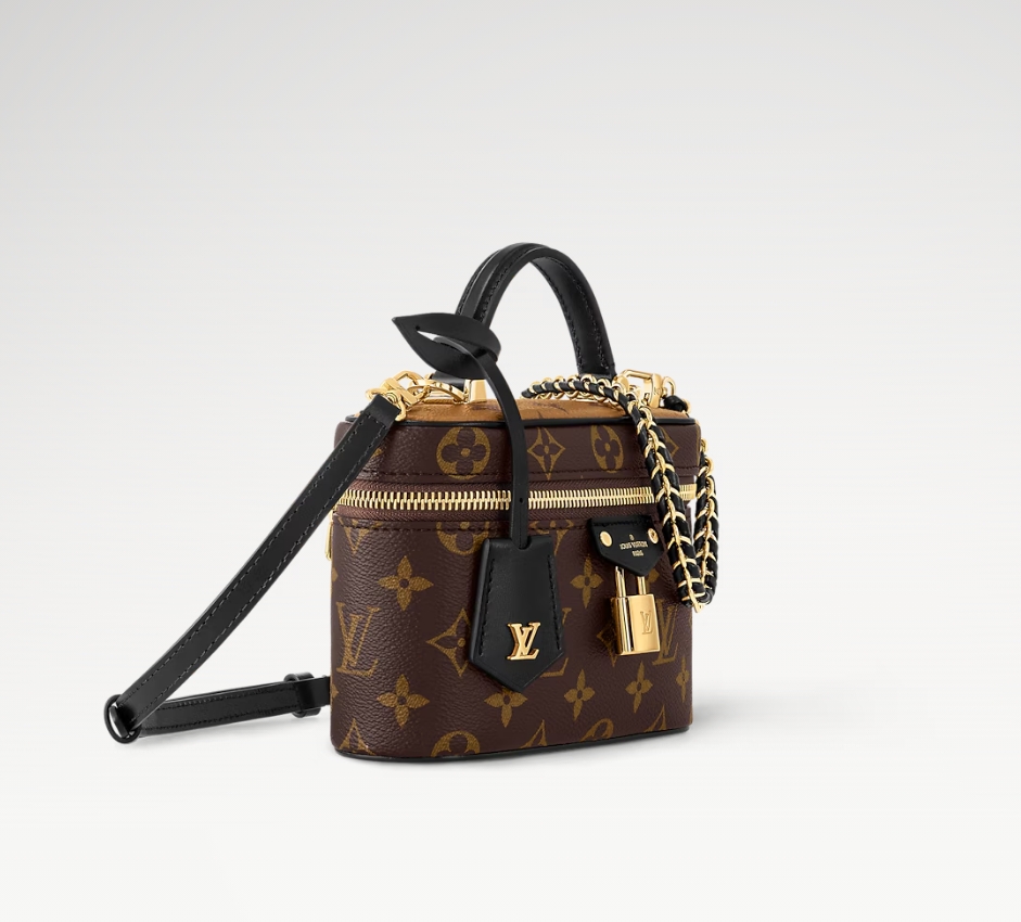 伝統的なバニティケースから着想を得た、モノグラム・キャンバスの「ヴァニティ・チェーン ポーチ」。メゾンの旅の真髄(こころ)が息づく一品です。洗練されたスリムなフォルムを、レザーのトリミングを施したトップハンドルと取外し可能な編み込みのチェーンが引き立てます。LV ロゴの刻印入りパドロック(錠前)やレザーのキーベルなど、ふんだんに散りばめた特徴的なディテールも魅力。