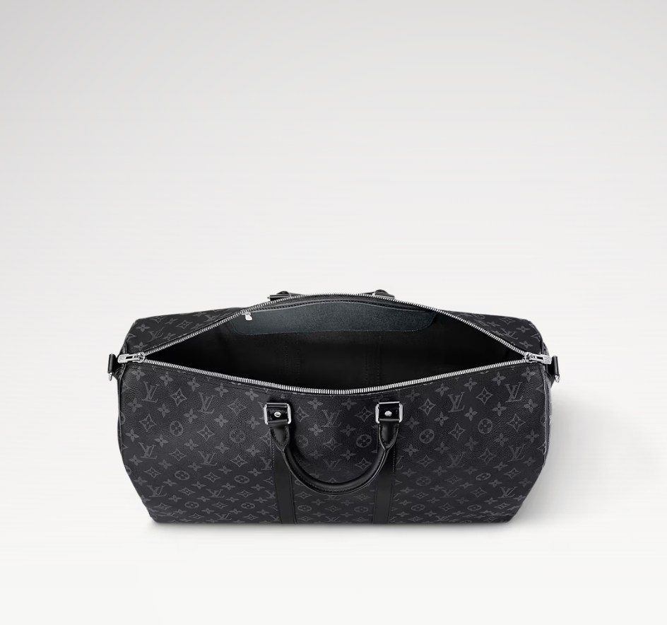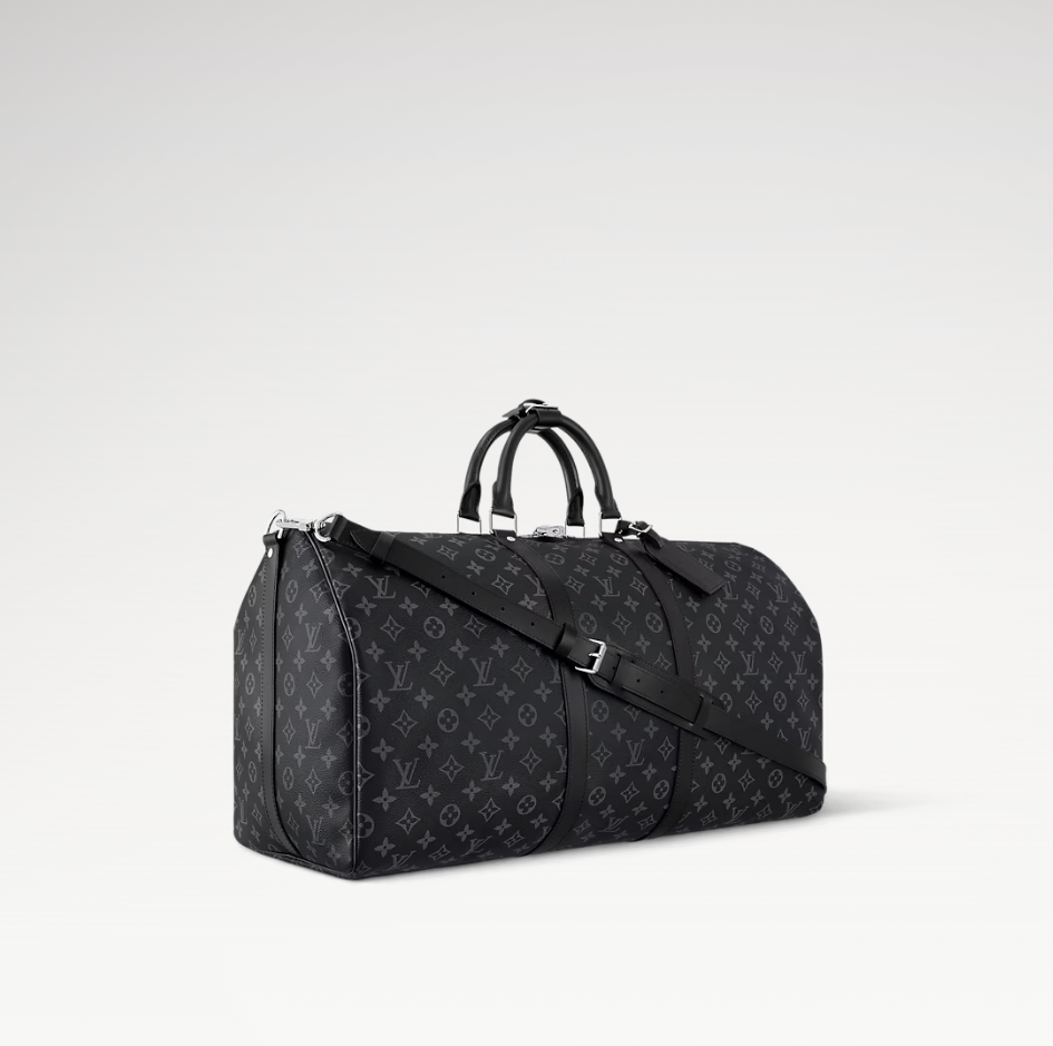 ブラックとグレーのアイコニックな新素材、モノグラム・エクリプス キャンバスで仕立てた「キーポル・バンドリエール 55」。軽量でしなやかな旅行鞄は、その名の通り、パッキングしやすい収納力が魅力。1週間分のワードローブがしっかり入るゆったりサイズで機内持ち込みも可能です(航空会社や使用する機材によって異なります)。