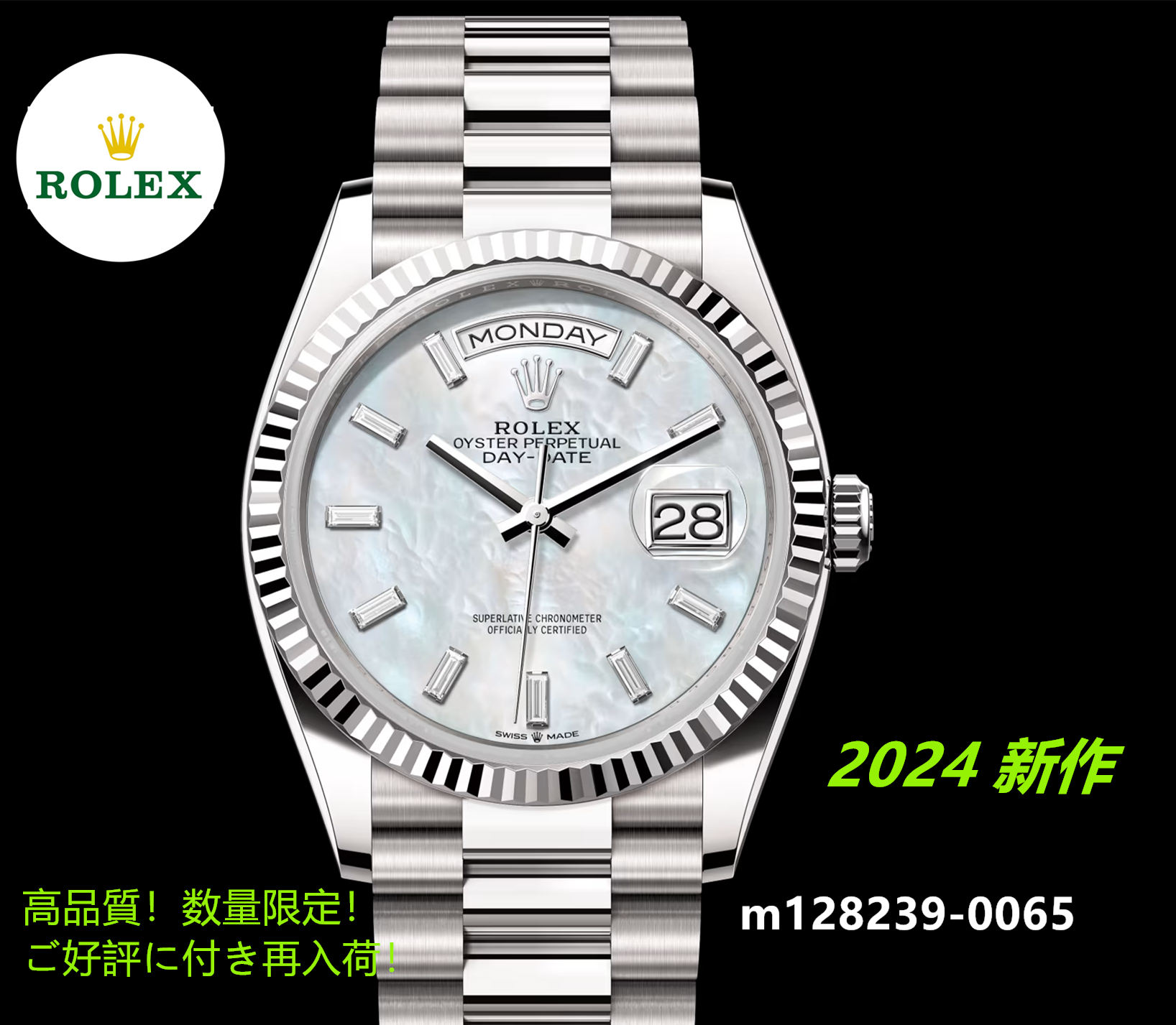 デイデイト 36 m128239 2024 6モデル オイスター、36 mm、ホワイトゴールド