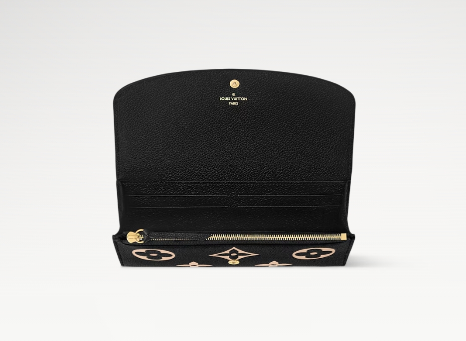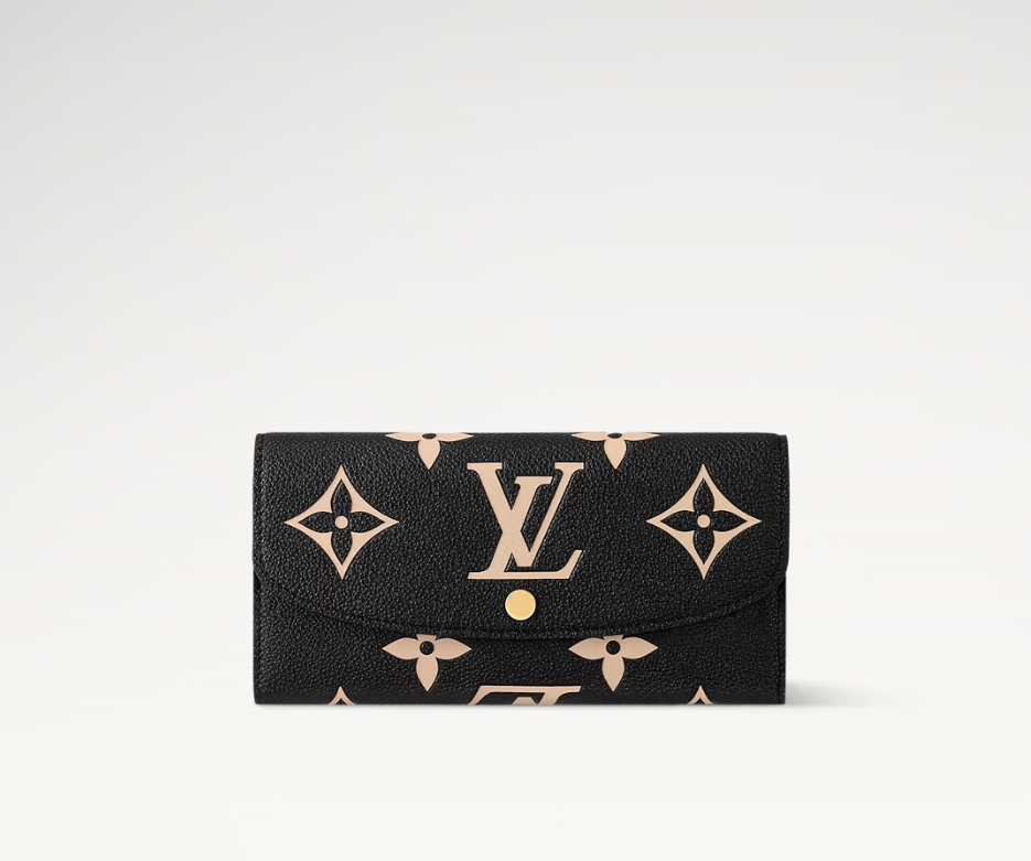 グレイン(しぼ)が美しいモノグラム・アンプラント レザーで仕立てた、スリムでエレガントなデザインの「ポルトフォイユ・エミリー」。財布としてもクラッチとしてもご使用いただけます。ブラックのレザーに目を引くオーバーサイズのクラシカルなモノグラム・パターンをエンボス加工し、さらにベージュでプリント加工を施しました。ファスナー付きコインポケットを備えた収納力も魅力。